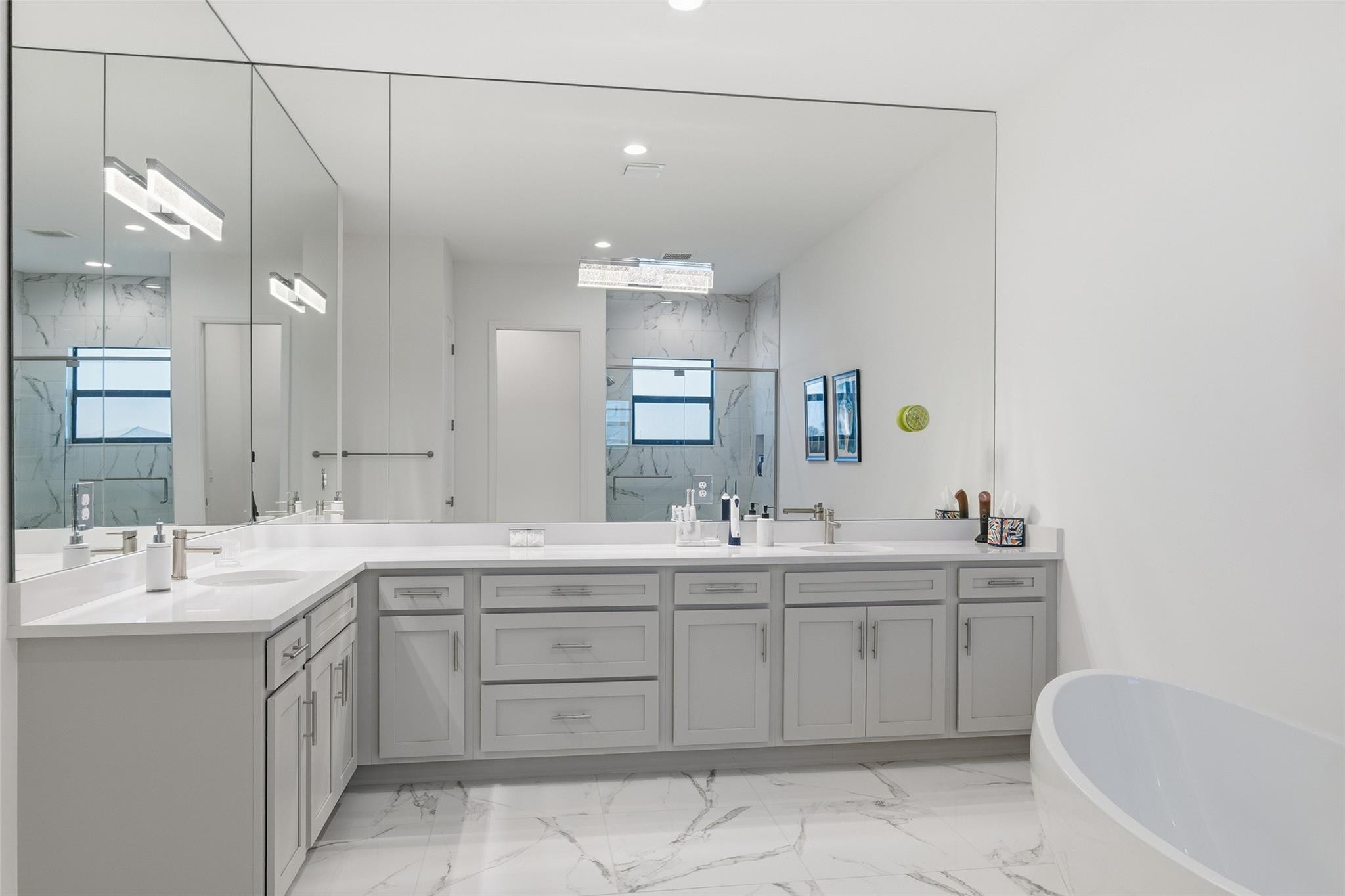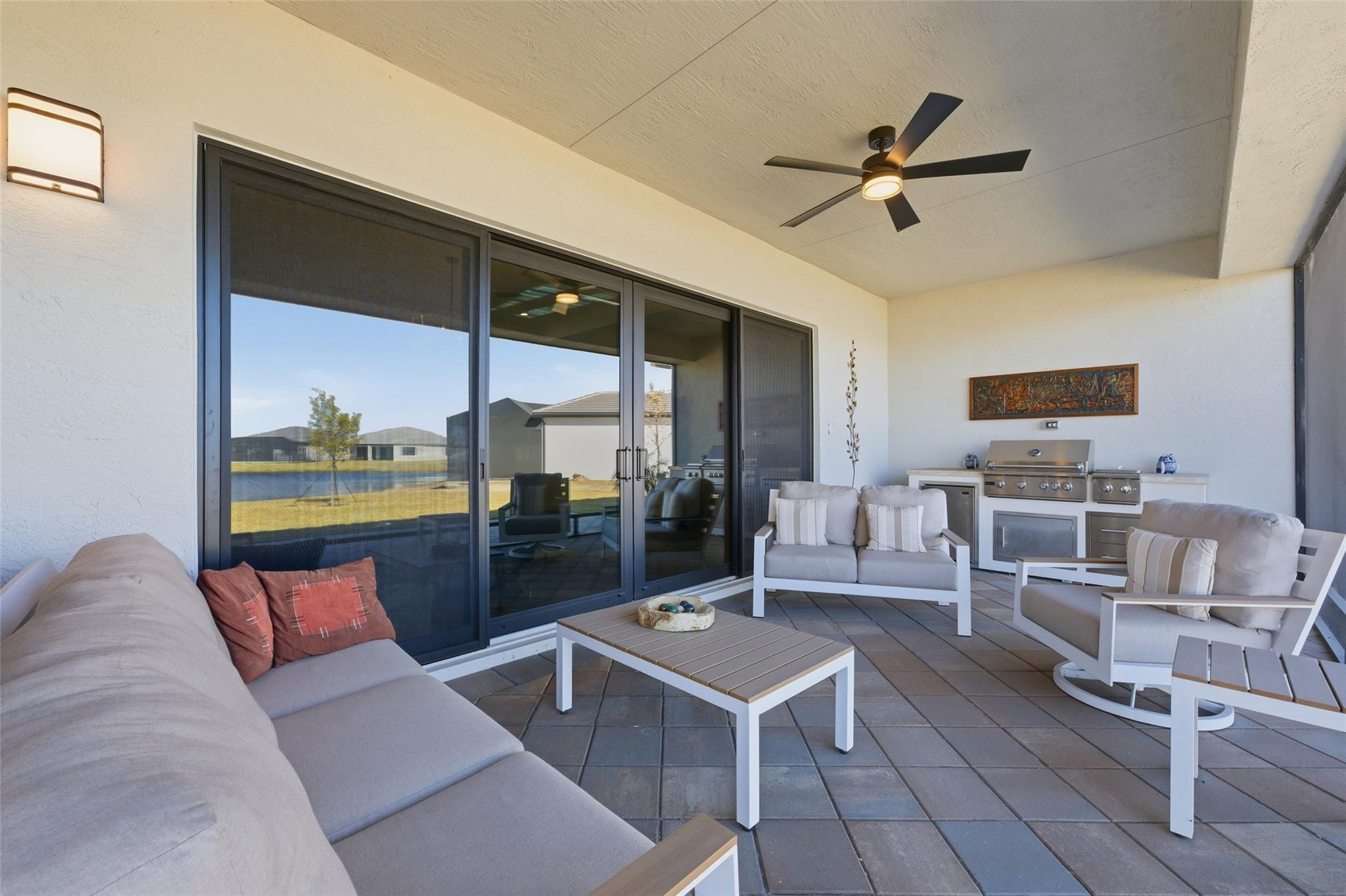 Stunning 2025 New Construction, Bellagio luxury single family residence, offering 2668 sf of refined living space on a rare oversized water front lot. This exceptional home features sleek luxury tile flooring thru out & a thoughtfully designed open floorplan ideal for both every day living and entertaining. The gourmet kitchen is a show piece complete with upgraded premium appliances, custom cabinetry & designer finishes. Seamlessly extending the living space, enjoy a fully equipped summer kitchen, perfect for dining & entertaining. Designer furniture & curated high-end fixtures elevate every room with style & sophistication. This home combines modern construction & upscale finishes to deliver the ultimate in luxury living. A rare opportunity to own a turn-key waterfront masterpiece This residence is offered completely furnished with all new Italian leather furniture, a contemporary glass and chrome dining ensemble and a 75" television. All bedrooms feature Tempur-Pedic mattresses for exceptional comfort. Motorized window coverings throughout provide effortless style and convenience. An Allini whole-home water filtration system and epoxy-finished garage floors complete this exceptional turnkey luxury offering.