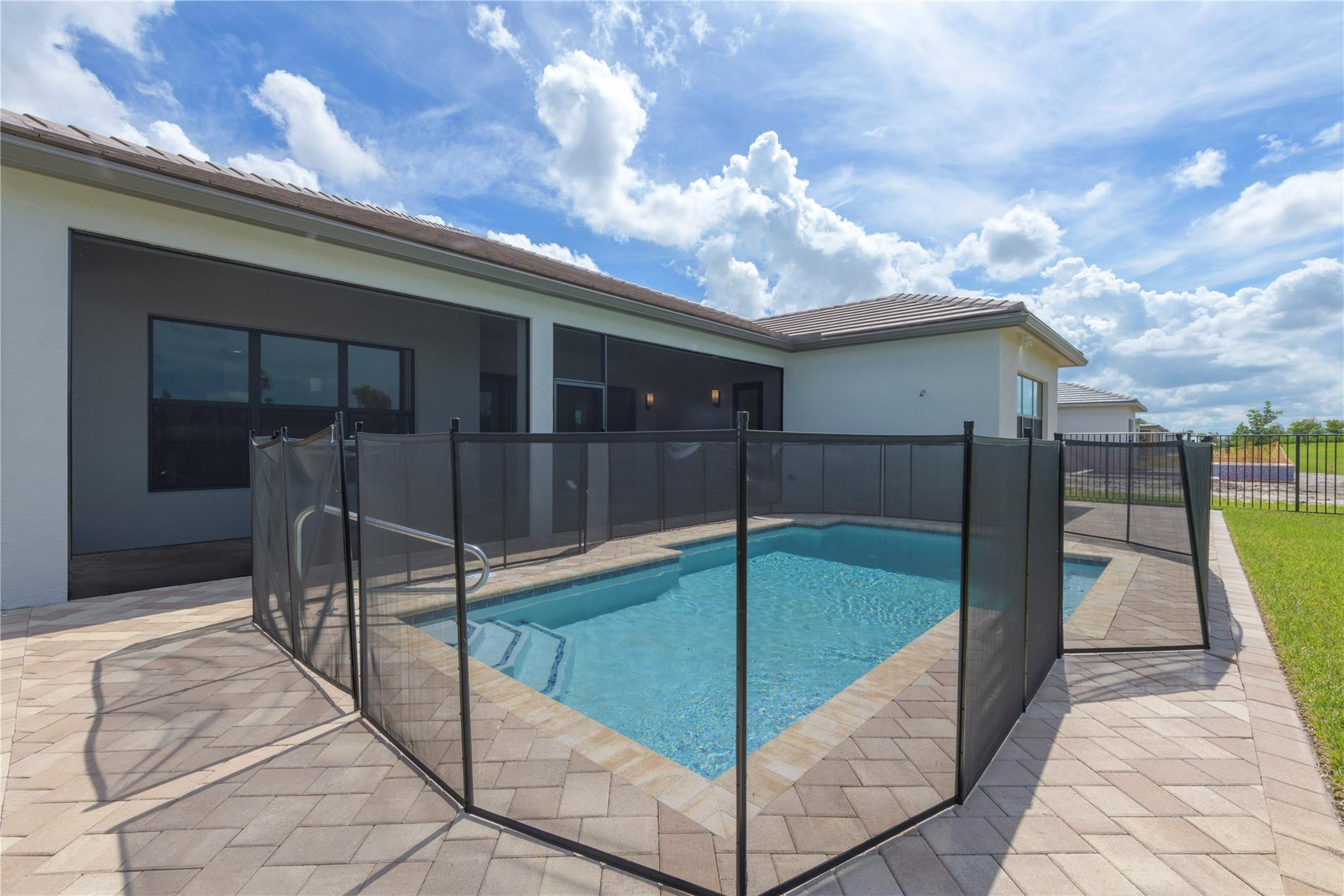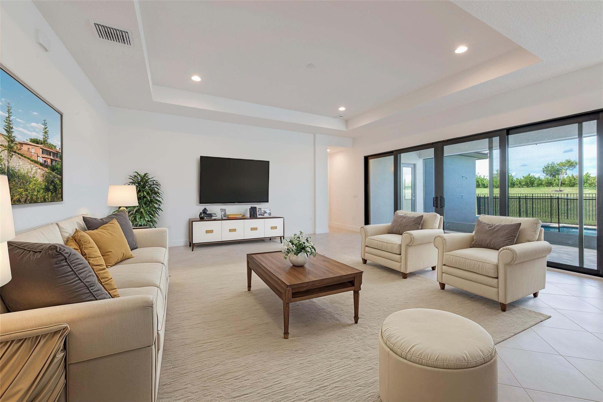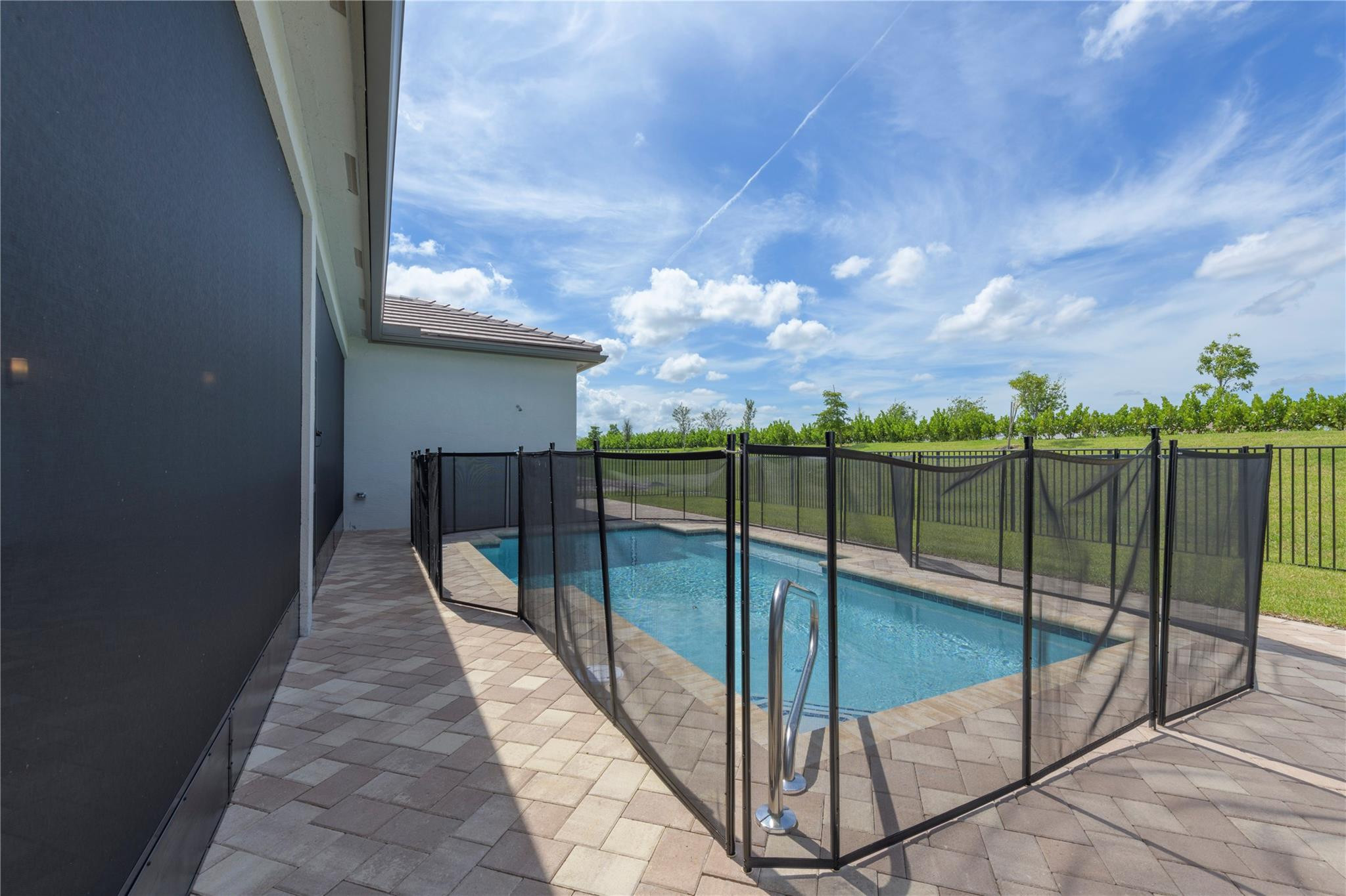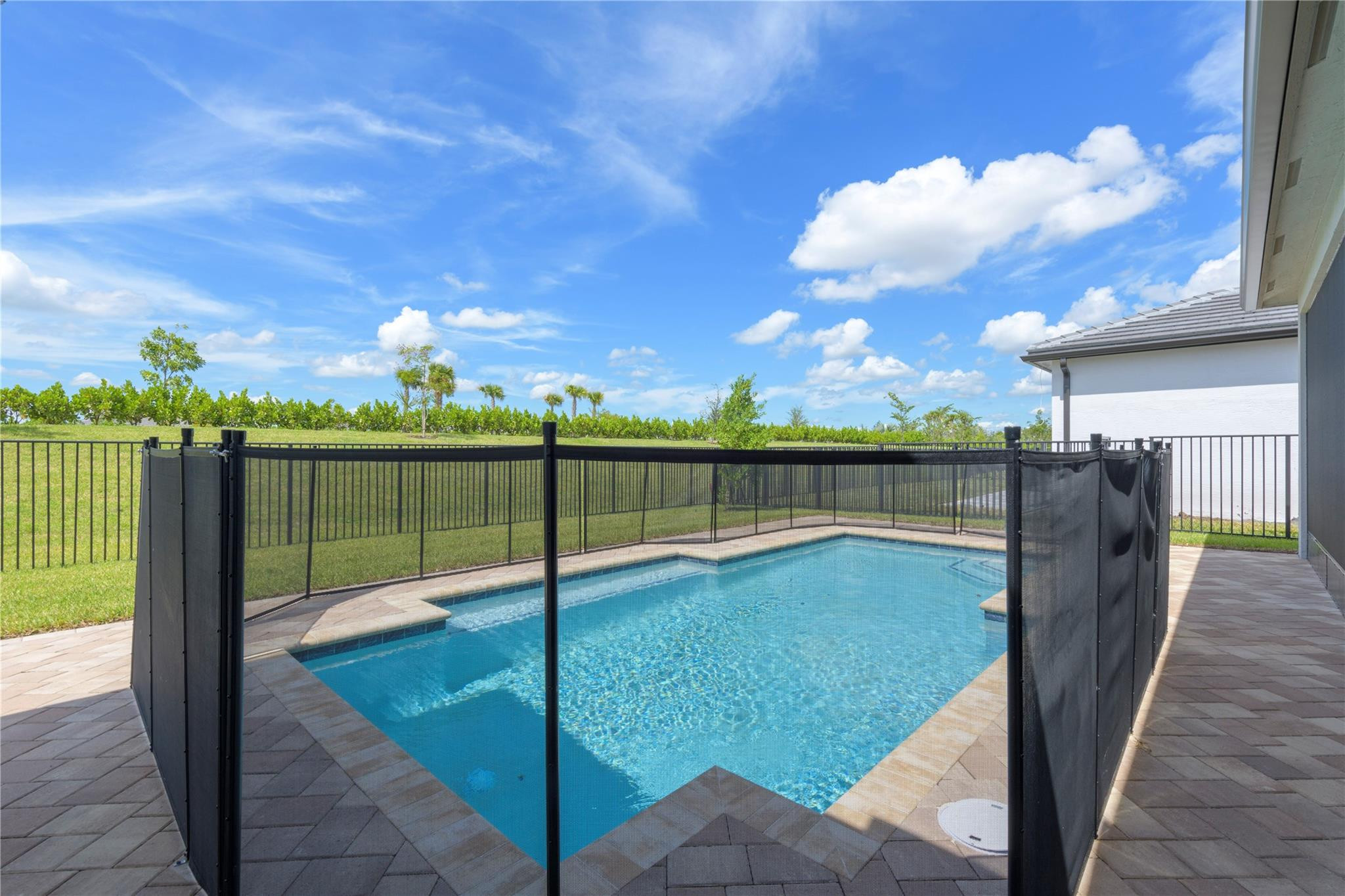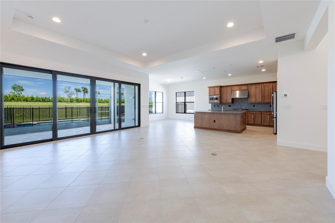 Step into your own private paradise with this never lived in Madison Model at Valencia Walk. Impressive 10' ceilings, 2736 SF of luxury in this 3 BR, 3.5 bath, plus den.Whether you are soaking in the sun or cooling off in your own private custom pool, you can admire the lush greenway behind this home. Over $190K in upgrades. Just to name a few: Roman tub in main BR, frameless shower, upgraded appliances, double oven with vented hood, outdoor shower with H & C water, accessible from French door leading out from the main BR. Ext garage and driveway. Opening soon a 34,000 SF clubhouse with restaurant and bar. Be a part of Riverland's world class gym,& amenities such as 53 pickleball Courts tennis courts, bocce, indoor pool, basketball Ct. 3 outdoor pools and Arts and Cultural center.