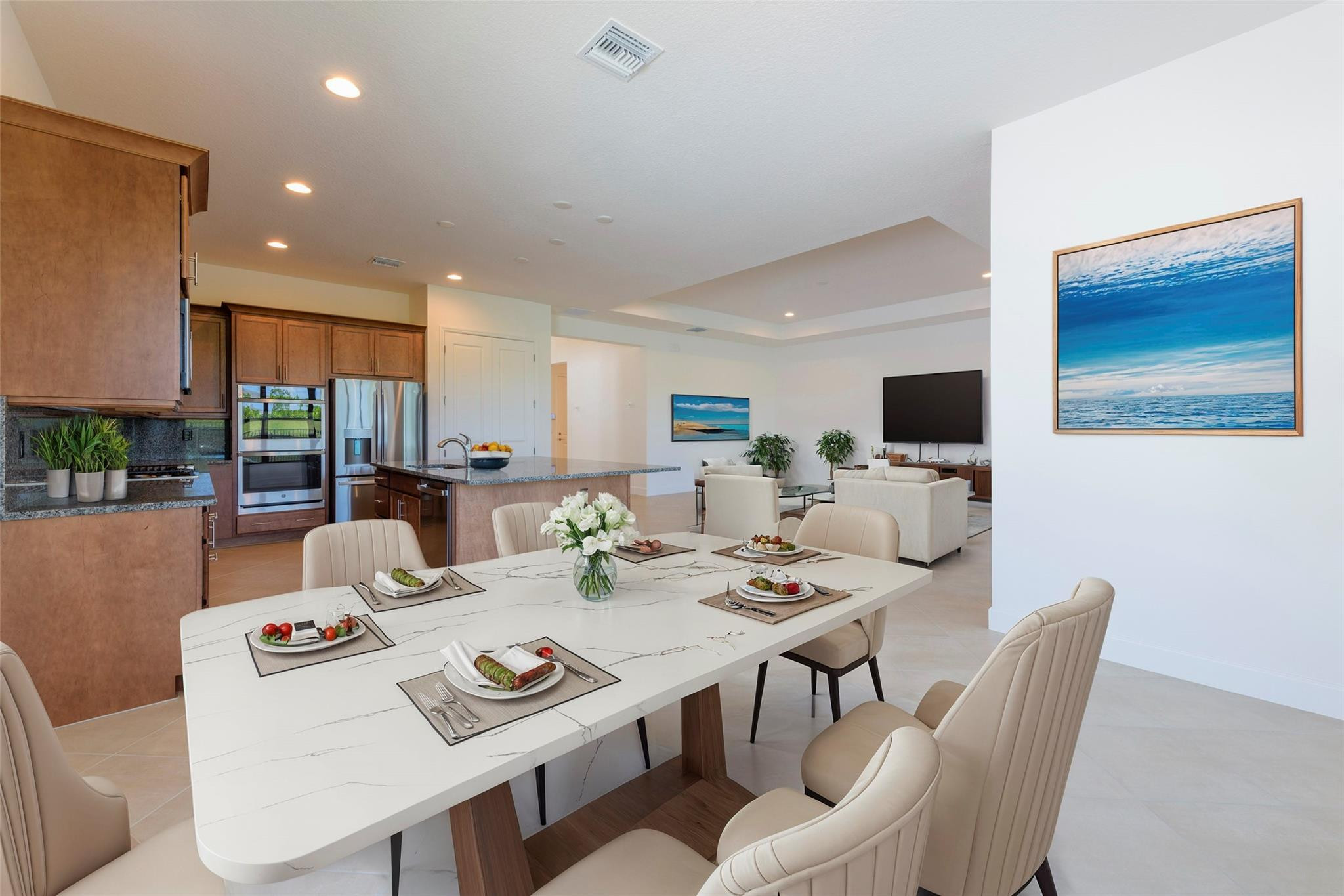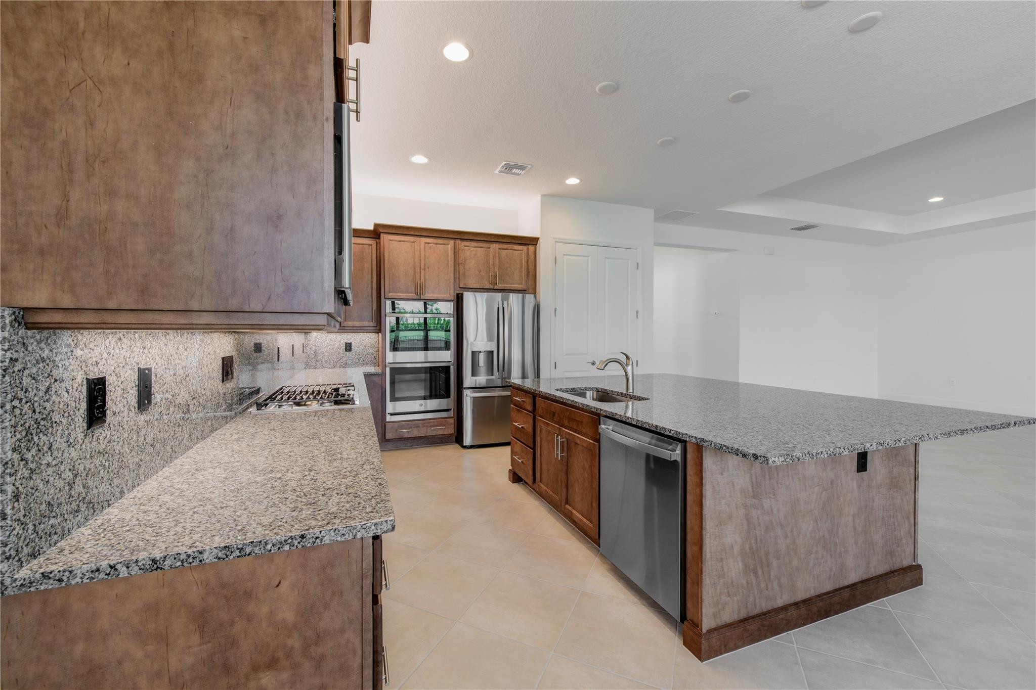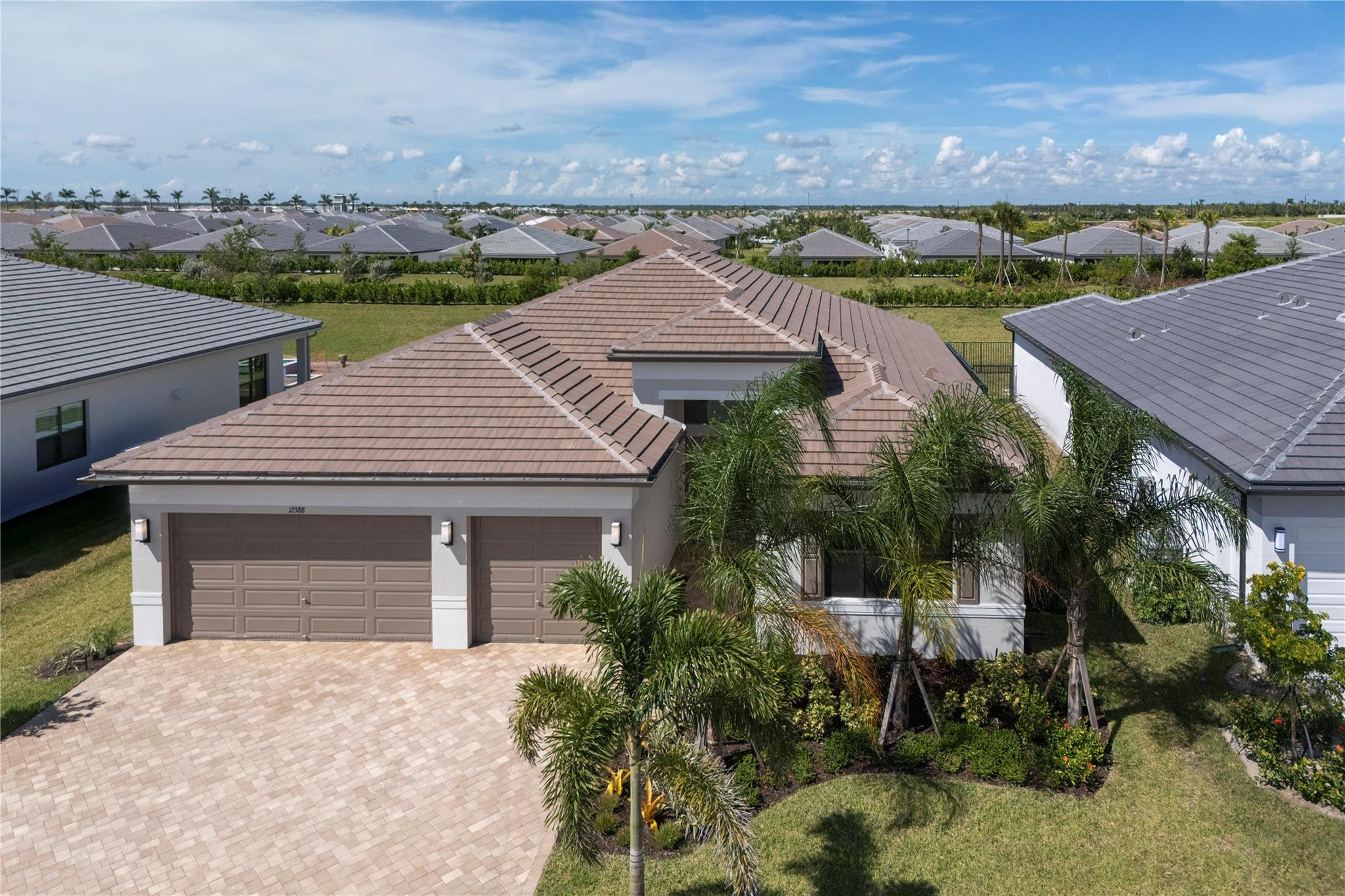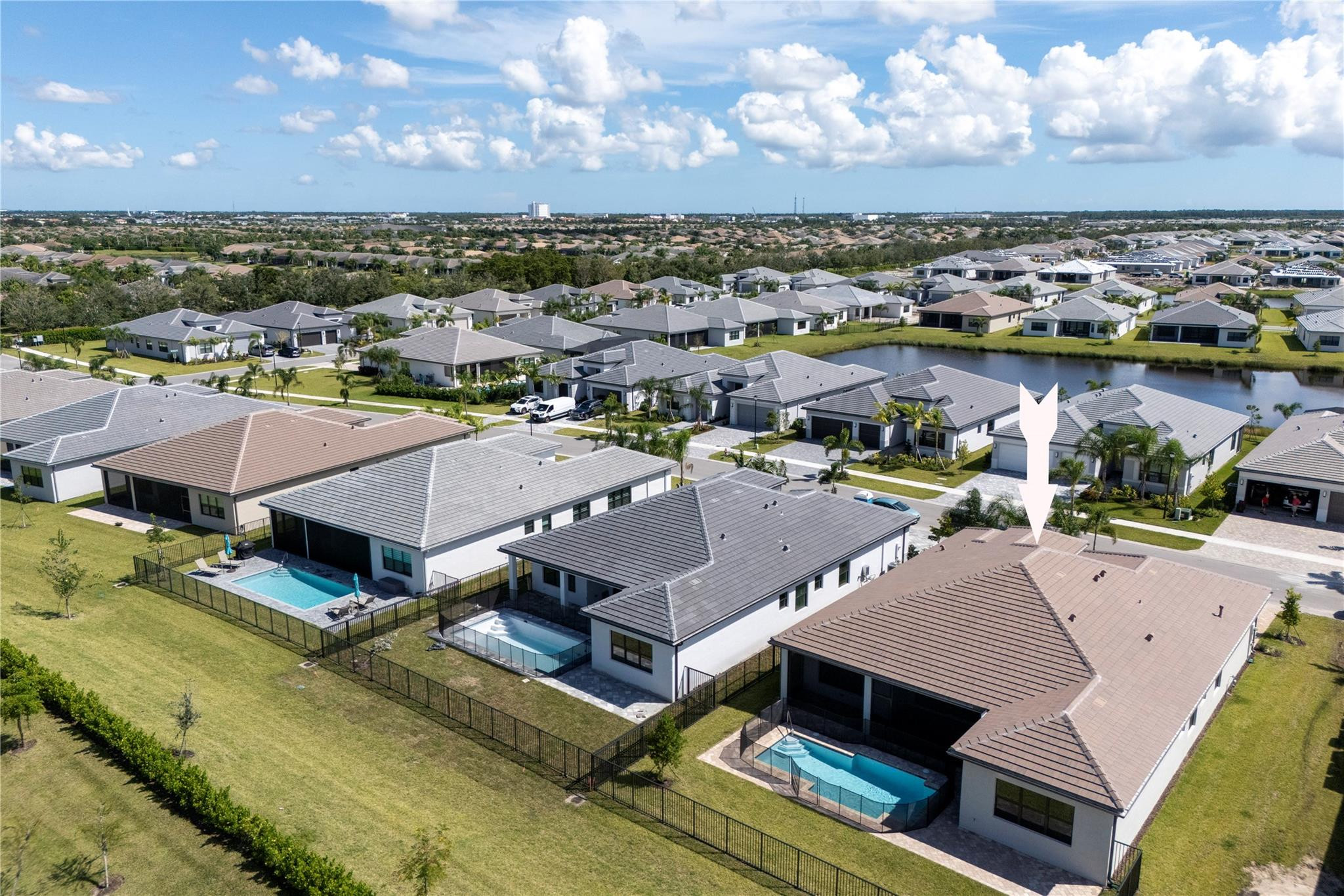 Step into your own private paradise with this never lived in Madison Model at Valencia Walk. Impressive 10' ceilings, 2736 SF of luxury in this 3 BR, 3.5 bath, plus den.Whether you are soaking in the sun or cooling off in your own private custom pool, you can admire the lush greenway behind this home. Over $190K in upgrades. Just to name a few: Roman tub in main BR, frameless shower, upgraded appliances, double oven with vented hood, outdoor shower with H & C water, accessible from French door leading out from the main BR. Ext garage and driveway. Opening soon a 34,000 SF clubhouse with restaurant and bar. Be a part of Riverland's world class gym,& amenities such as 53 pickleball Courts tennis courts, bocce, indoor pool, basketball Ct. 3 outdoor pools and Arts and Cultural center.