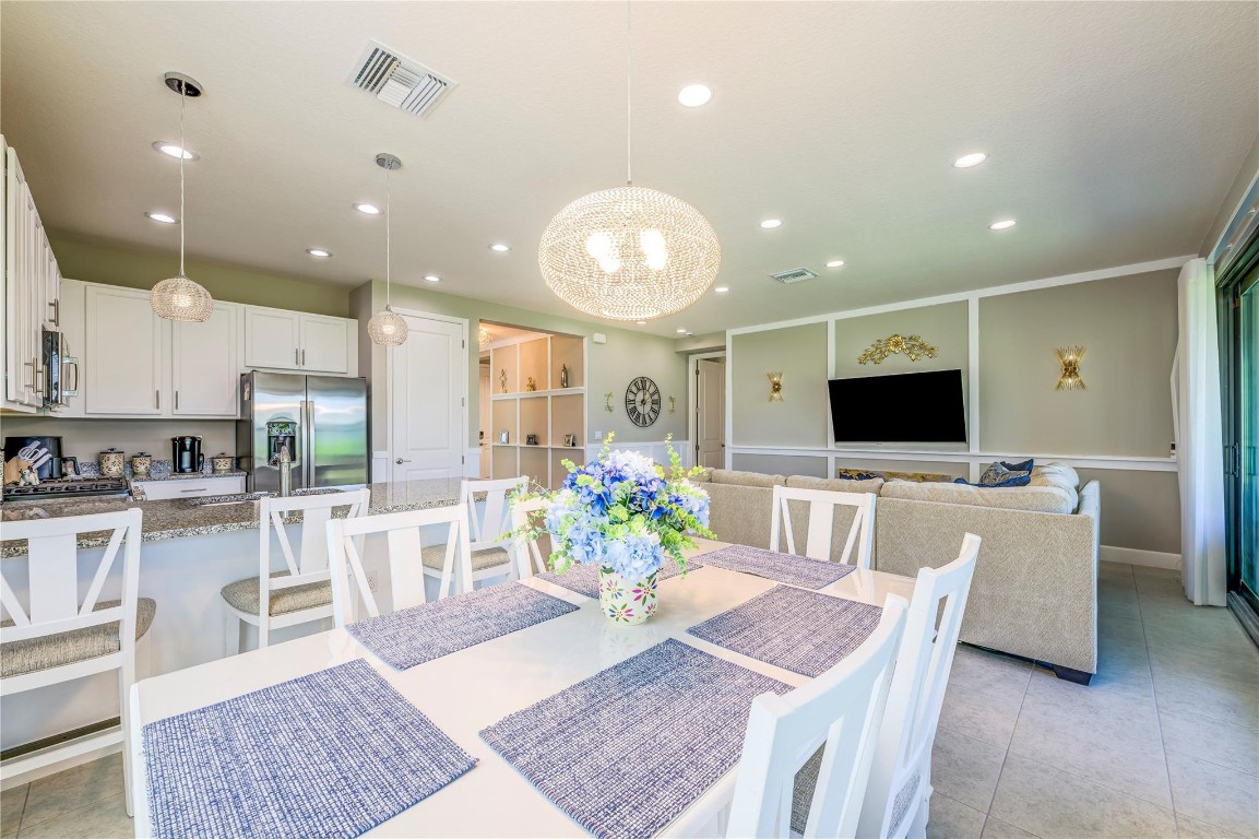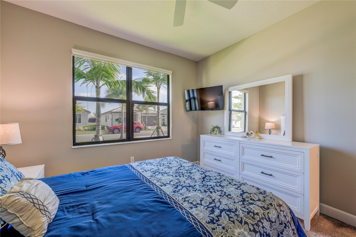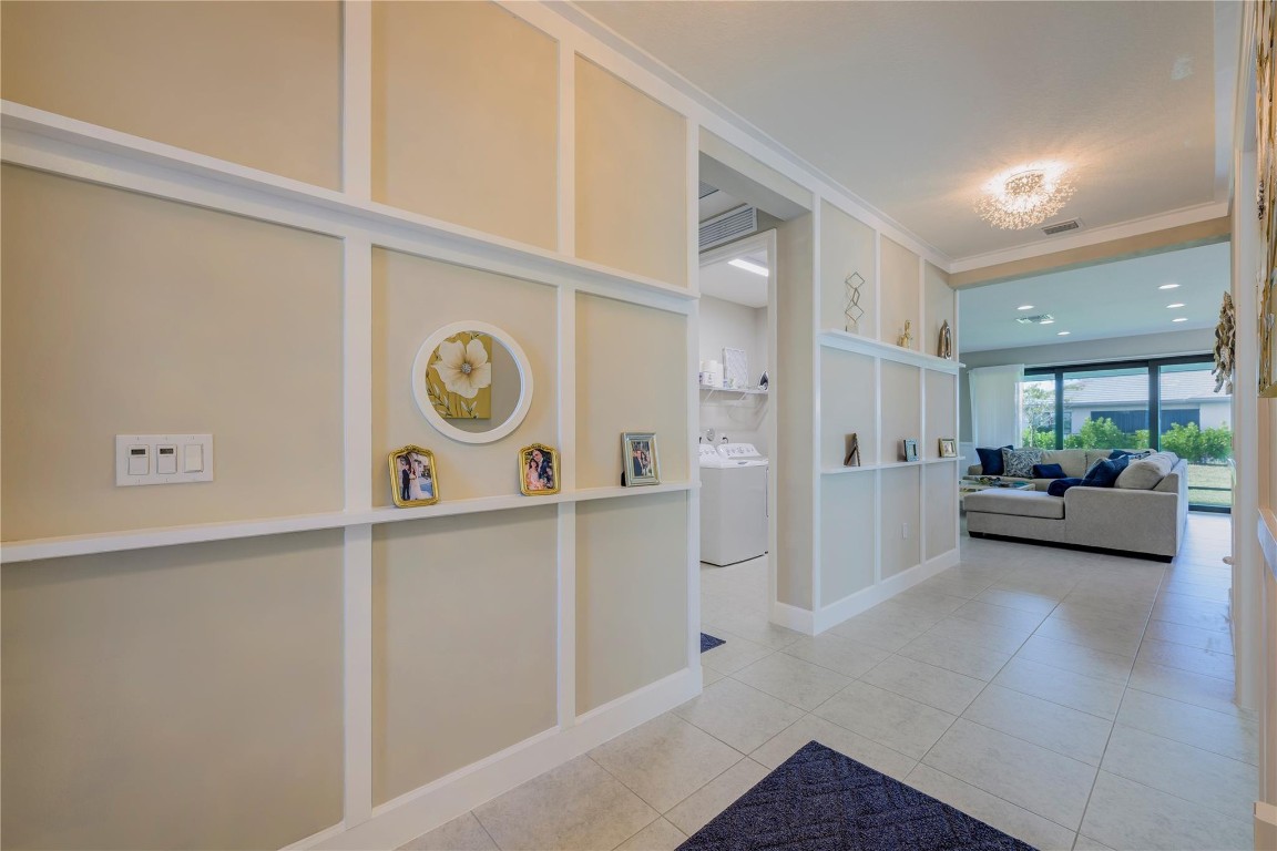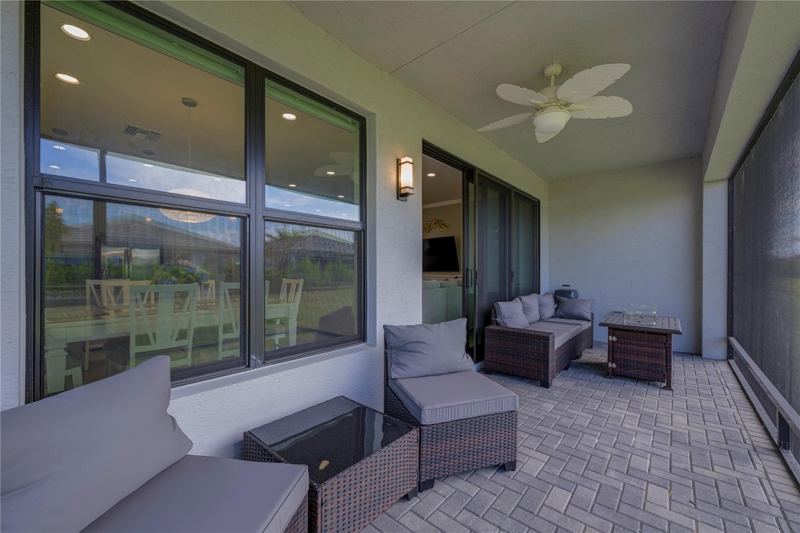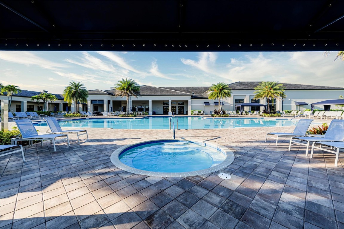 Welcome to Valencia Walk and this one year old bright and beautiful Abaco upgraded model home. Tastefully furnished, being sold turn key and move in ready. This is a 2 bedroom, 2 bath plus den. Upgrades include designer lighting, Silhouette Shades in all rooms and faux wood blinds in bathrooms, Wood framed feature wall in foyer and living room and chair rail with enamel wainscoting in kitchen. See attached full list of upgrades and furnishings. Enjoy the many amenities that are offered here such as tennis, bocce, pickle ball, the World Class Gym, Indoor and outdoor pools, resistance pool, basketball court, the arts and cultural center, the paseo, the many wonderful shows in the 34,000 sq ft clubhouse with impressive restaurant and full bar.