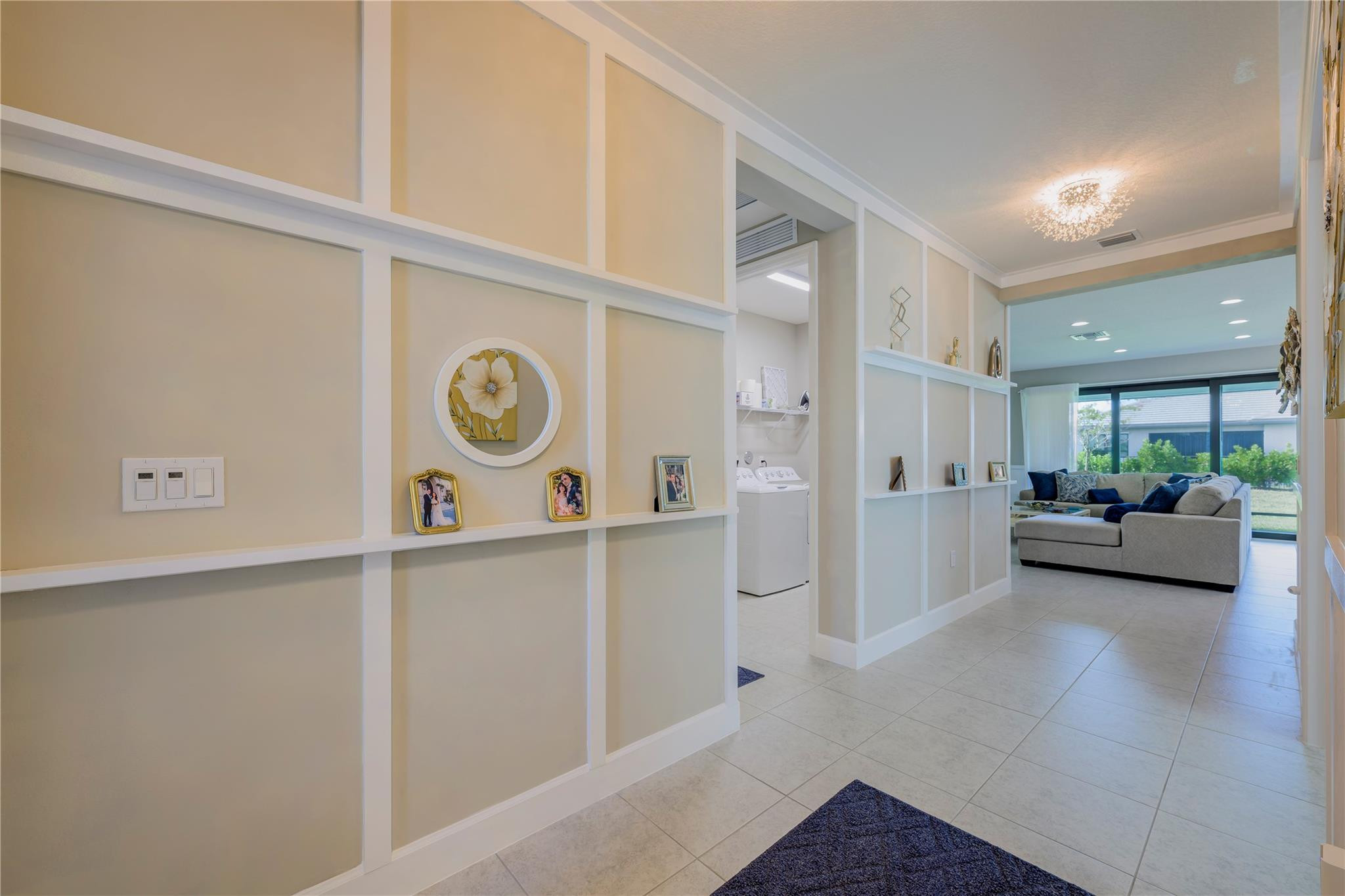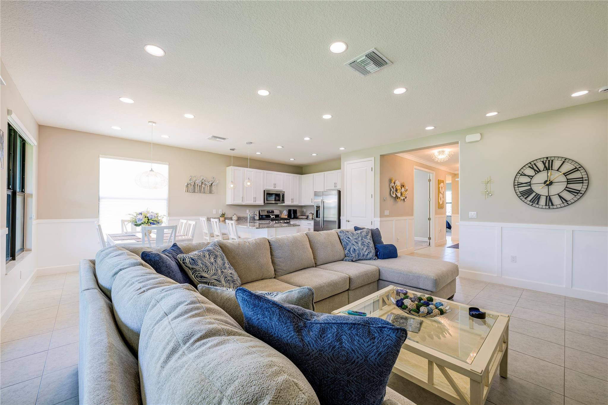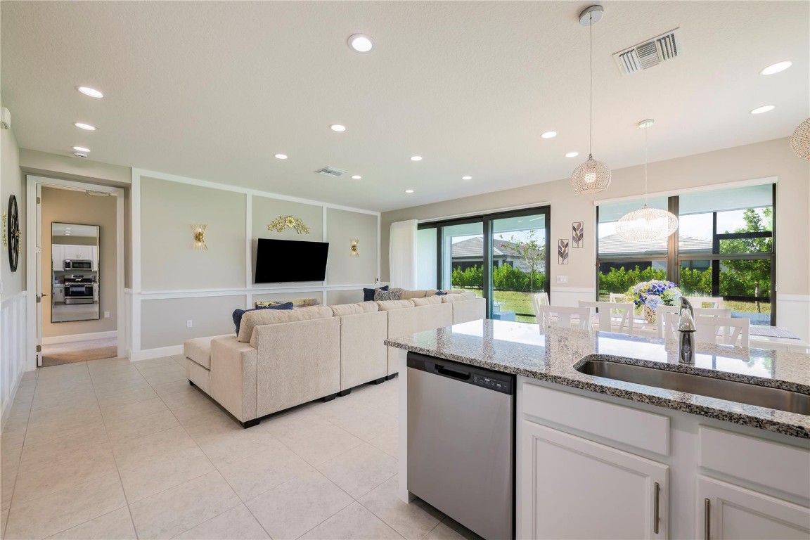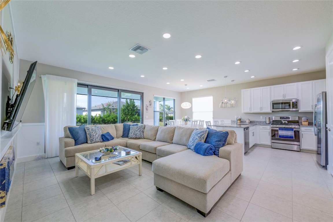 Welcome to Valencia Walk and this one year old bright and beautiful Abaco upgraded model home. Tastefully furnished, being sold turn key and move in ready. This is a 2 bedroom, 2 bath plus den. Upgrades include designer lighting, Silhouette Shades in all rooms and faux wood blinds in bathrooms, Wood framed feature wall in foyer and living room and chair rail with enamel wainscoting in kitchen. See attached full list of upgrades and furnishings. Enjoy the many amenities that are offered here such as tennis, bocce, pickle ball, the World Class Gym, Indoor and outdoor pools, resistance pool, basketball court, the arts and cultural center, the paseo, the many wonderful shows in the 34,000 sq ft clubhouse with impressive restaurant and full bar.