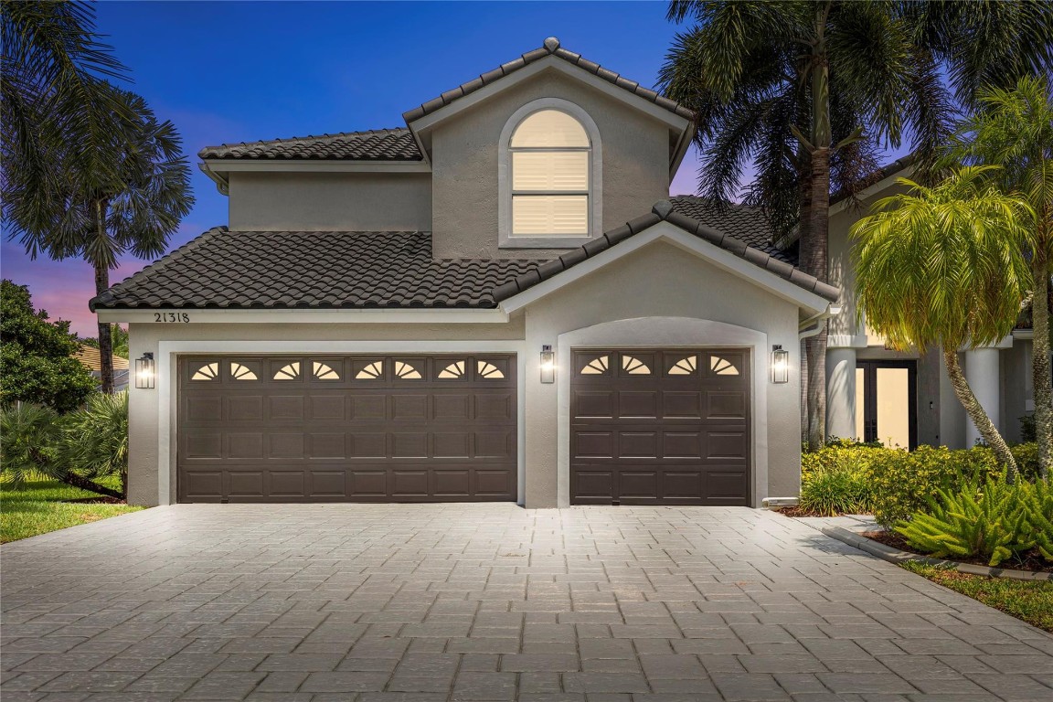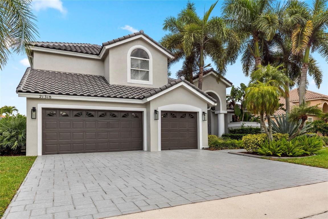 Welcome to 21318 Gosier Way! This two-story 3,371sq ft, 4 Bedroom 3.5 Bath home has one of the largest backyards in Boca Falls. Situated on a nearly .4 acre lot, this luxurious, well-designed home features dual glass front doors, NEW slate grey tile roof, luxury vinyl wide plank flooring, high ceilings and LED recessed lights. The updated, elegant kitchen and bathrooms showcase quartz countertops and white cabinetry. Custom built-in office space with loft, renovated laundry room with ceiling height cabinets and SS sink. The 3-car garage has extra storage and EV car charger. Neighborhood amenities include tennis, pickleball and basketball courts, heated pool, playground, gym, clubhouse. Walk, bike or take your golf cart to A+ rated schools with dedicated crossing guard and gated entrance!