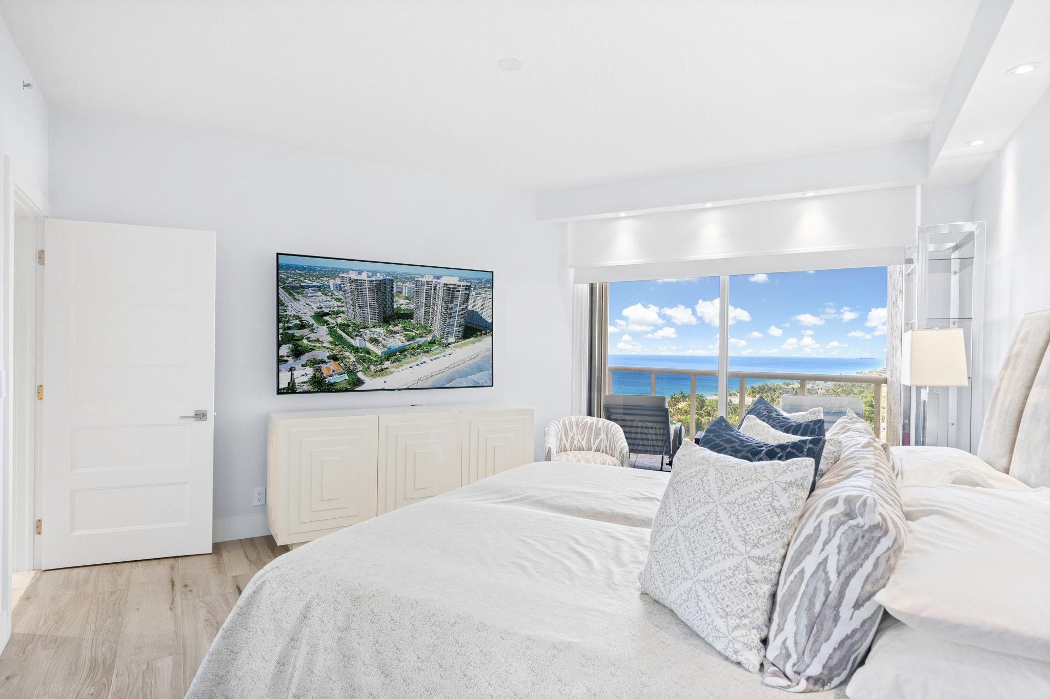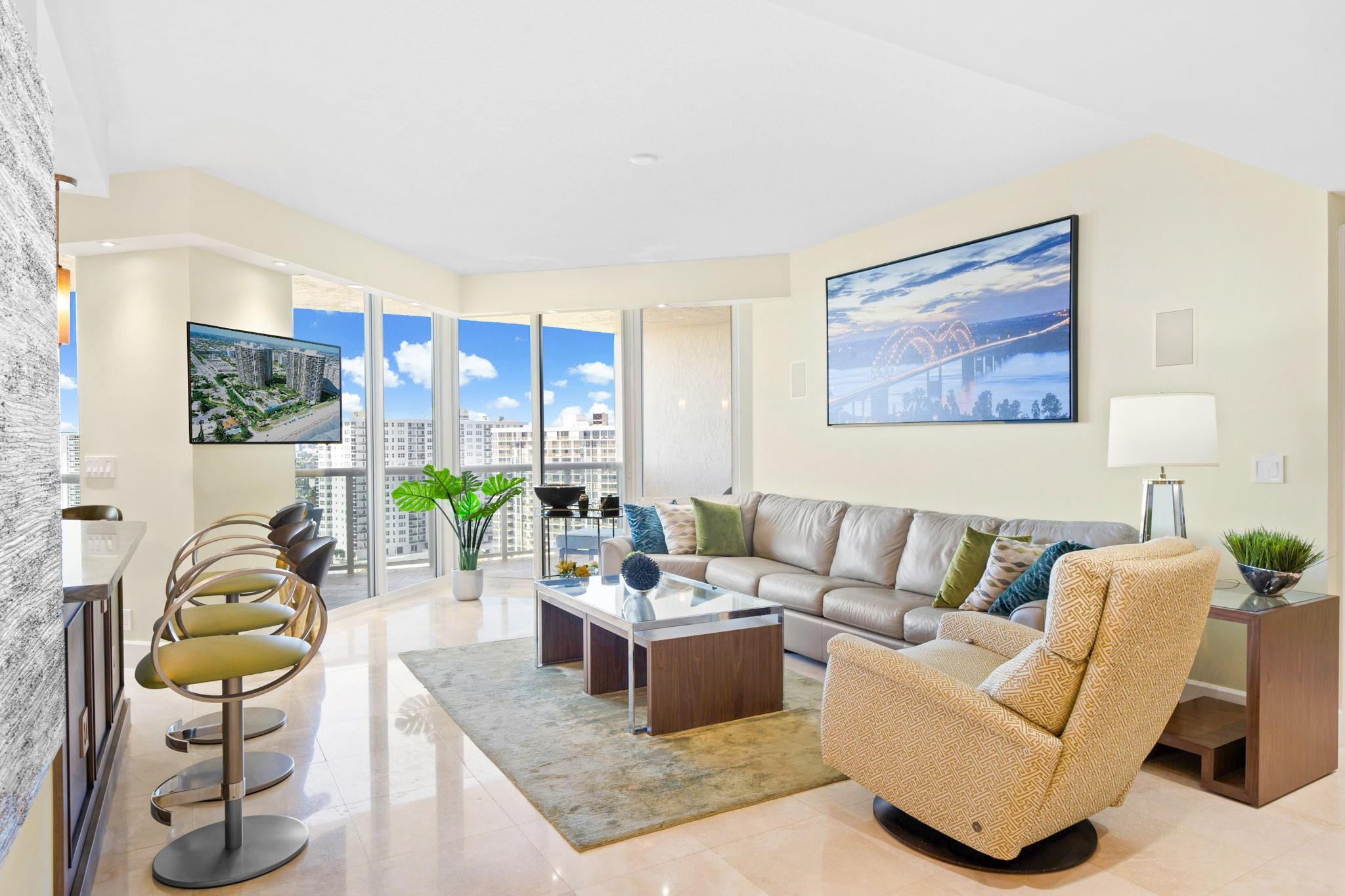 OUTSTANDING OCEAN AND CITY VIEWS FROM THIS SOUTHEAST FACING RESIDENCE 2 BEDROOM 2 BATH SPLIT BEDROOM FLOOR PLAN + OFFICE. BEAUTIFULLY RENOVATED WITH TOP-OF-THE-LINE FINISHES OPEN KITCHEN, STAINLESS STEEL APPLIANCES, GRANITE COUTERTOPS CUSTOM BUILT-IN OFFICE, CONTEMPORARY BATHS, NEW WASHER AND DRYER.2 GARAGE PARKING SPACES AND STORAGE ARE INCLUDED 5 STAR RESORT STYLE AMENITIES INCLUDE 2 TENNIS COURTS (HAR TRU), A POOLSIDE RESTAURANT: L'HERMITAGE BAR & GRILL, NEW LOBBY, NEW GYM EQUIPMENT, GATED ENTRY 2 PETS ANY SIZE, DOG PARK, CONCIERGE AND MUCH MORE. NESTLED ON 10 OCEANFRONT ACRES, TROPICALLY LANDSCAPED.