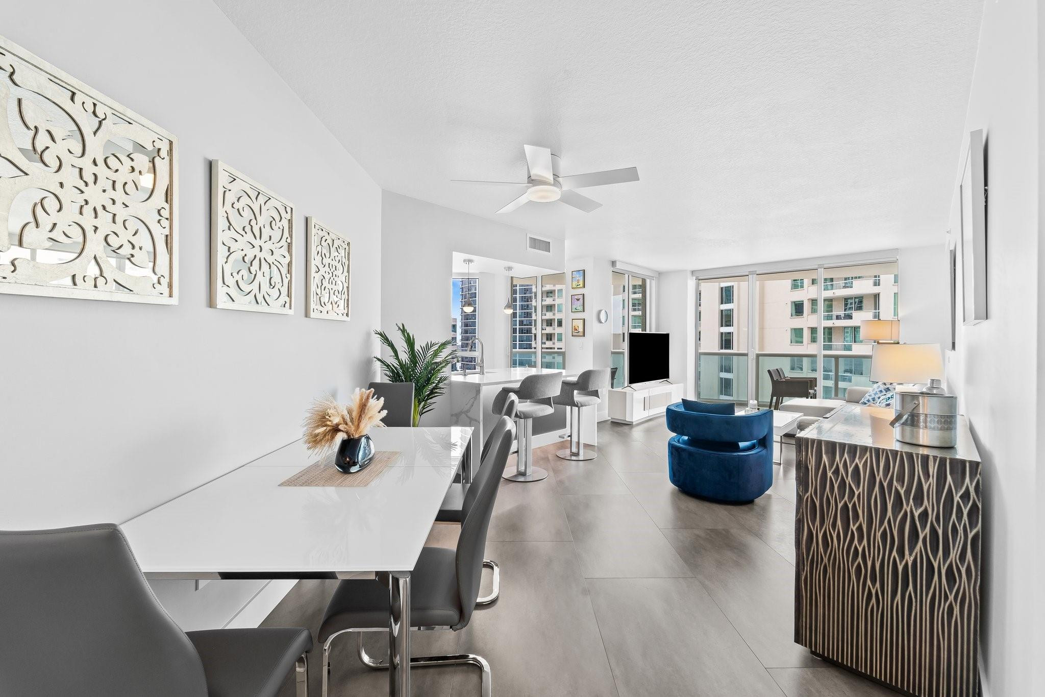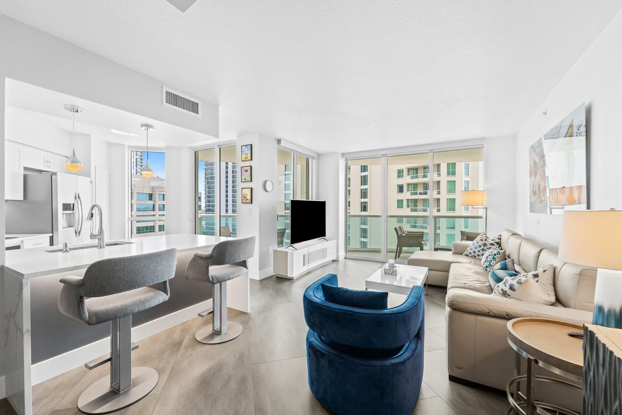 PRICE REDUCED TO SELL! IMPECCABLE 3/2 CUSTOM REMODEL OCEAN,RIVER & CITY VIEWS. DESIGNER FINISHES INCLUDE: LARGE EAT IN KITCHEN WATERFALL QUARTZ COUNTERTOPS, CUSTOM CABINETS/STAINLESS APPLIANCES, FULL TILE BACKSPLASH, NEW LUXURY VYNYL RECTANGLE WIDE PLANK FLOORING THROUGHOUT, ELECTRIC WINDOW TREATMENTS, CUSTOM LIGHTING, FULLY RENOVATED BATHROOMS & DOUBLE SINKS, LIGHTED MIRRORS, CUSTOM CLOSET IN PRIMARY BATH EXTRA STORAGE, FRAMELESS SHOWER DOORS, BUILT IN CLOSETS, MULTIPLE GLASS BALCONIES OFF KITCHEN, LIVING & PRIMARY BEDROOM. FULL SERVICE 5* LIFESTYLE INCLUDE CONCIERGE,TROPICAL POOL DECK/HOT TUB, CLUBROOM, BUSINESS CENTER, THEATER MOVIE SCHEDULE, PET FRIENDLY, 2 STORY GYM,24 HR VALET/SECURITY. ALL WALKING DISTANCE TO ALL RESTAURANTS,SHOPS, ART EVENTS,PUBLIX MARKET ON FAMOUS LAS OLAS BLVD GREAT LAS OLAS LOCATION!