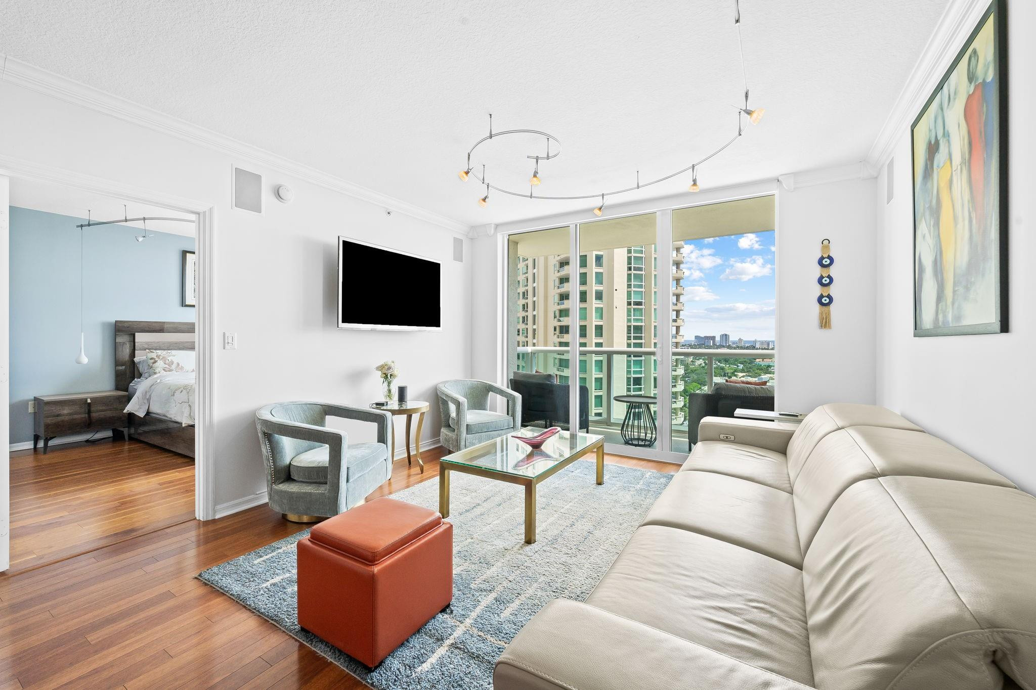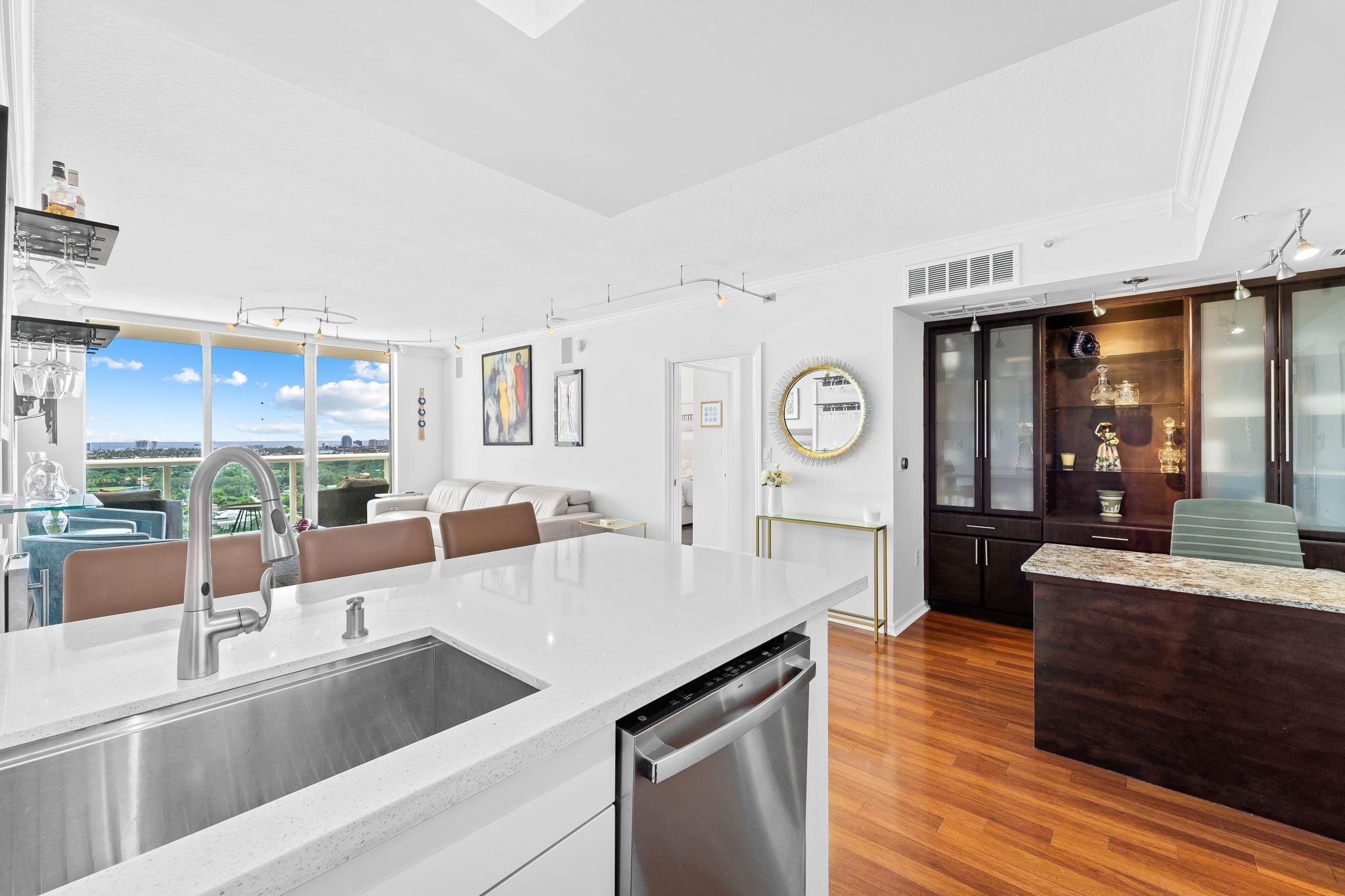 BEST VIEWS IN THE BLDG! TOTALLY RENOVATED FROM TOP TO BOTTOM! 2BR/2BTH RESIDENCE HAS FABULOUS DIRECT RIVER, OCEAN & CITY VIEWS FROM EVERY ROOM. FEATURES INCLUDE: SPLIT BEDROOM PLAN, CUSTOM BUILT-IN DESK/WALL UNIT, WOOD FLOORS THROUGHOUT, **ENTIRE KITCHEN NEW ** WITH QUARTZ COUNTERTOP, NEW MODERN WHITE CABINETS, STAINLESS APPLIANCES, CUSTOM PANTRY & W/D DOORS, BUILT IN CLOSETS, ELECTRIC WINDOW TREATMENTS THROUGHOUT, SURROUND SOUND, WINE COOLER, MASTER BATH WITH DUAL SINKS & WALK-IN SHOWER. 5* RESORT-STYLE AMENITIES INCLUDE HEATED POOL, 2 LEVEL FITNESS CTR, CLUBROOM, BUSINESS CTR & MORE. 24 HR SECURITY, FRONT DESK & CONCIERGE. DIRECTLY LOCATED WITHIN STEPS FROM LAS OLAS BLVD SHOPS, DINING & NIGHTLIFE! GREAT LAS OLAS LOCATION