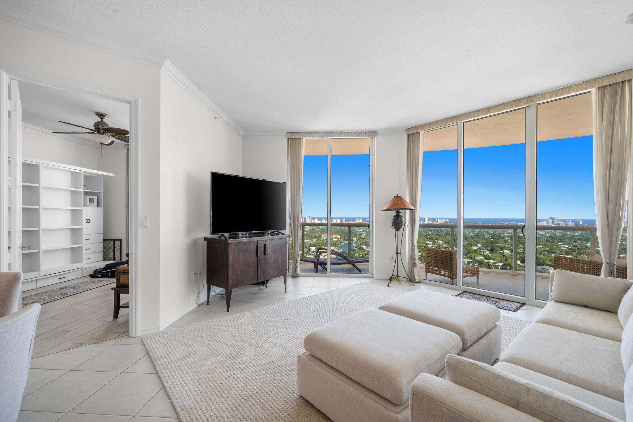 Rarely Available Sub Penthouse South East Corner Unit with Wrap Around Terrace Overlooking The Ocean, Intracoastal, and River. Perched High Above the City, this Two Bedroom Two Bath Residence Features Floor to Ceiling Glass Throughout, Soaring Ceilings, and Dramatic Views! Fully Furnished and Ready for you to Move In! The Master Suite Features King Size Bed, All New Furnishings, Ensuite Bath and Walk-In Closet. The Guest Suite is perfect for Home Office with a desk and Queen Size Murphy Bed Built-In. Great Flex Space for Modern Living. Living and Dining Room Feature Large 6 Top Glass Table with Coral Base, Brand New Sofa and Area Rug, Tasteful Decor and Large Television. Move-In Ready! Watergarden is a Five Star Full Service Building in the Center of Las Olas Right on the Riverwalk. One Assigned Space is included. Water, Sewer and Trash are included in the Rent.