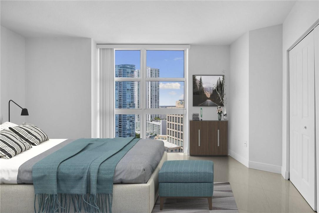 HIGH FLOOR WITH AMAZING CITY, SUNSET AND OCEAN VIEWS! OPEN LIVING/DINING AREA,GOURMET KITCHEN WITH COUNTER SEATING, GRANITE COUNTERTOPS, BEAUTIFUL TILE FLOORING THROUGHOUT, FLOOR TO CEILING IMPACT WINDOWS WITH GLASS BALCONY, NEW A/C UNIT & WASHER/DRYER. THE SPACIOUS BEDROOM HAS 2 CLOSETS INCLUDING A WALK-IN AND CAN ACCOMMODATE A KING-SIZE BED. CONVENIENTLY LOCATED TO THE LAS OLAS DISTRICT SHOPS, RESTAURANTS, PUBLIX GREEN-WISE MARKET & MORE! THE BLDG HAS 5 STAR RESORT-STYLE AMENITIES INCLUDING A TROPICAL POOL DECK, 2 LEVEL FITNESS CENTER, SAUNAS, BBQ AREA, MASSAGE ROOM, BILLIARDS, CLUB ROOM, MEDIA ROOM & MORE! 24 HR VALET, SECURITY & CONCIERGE.