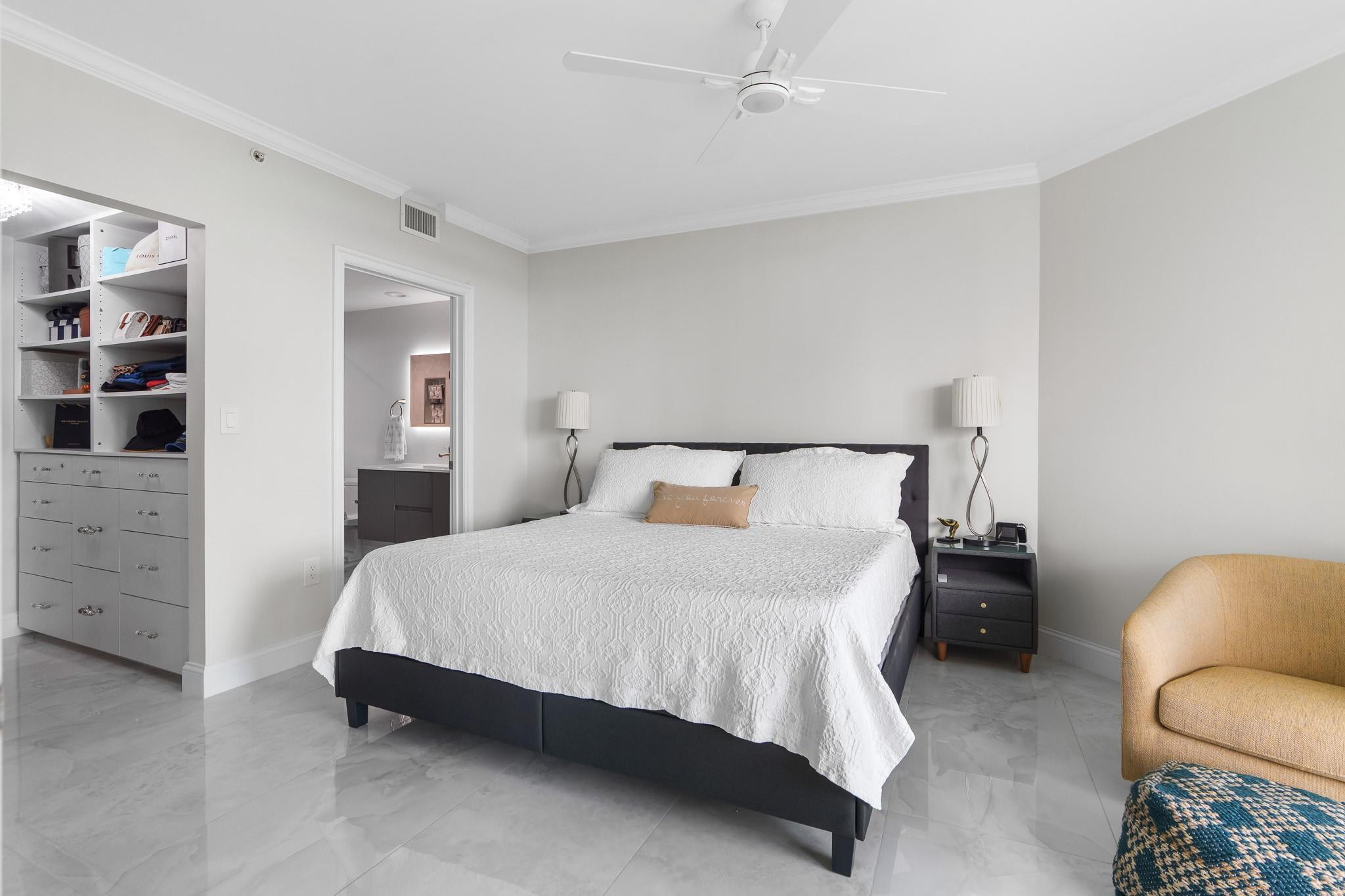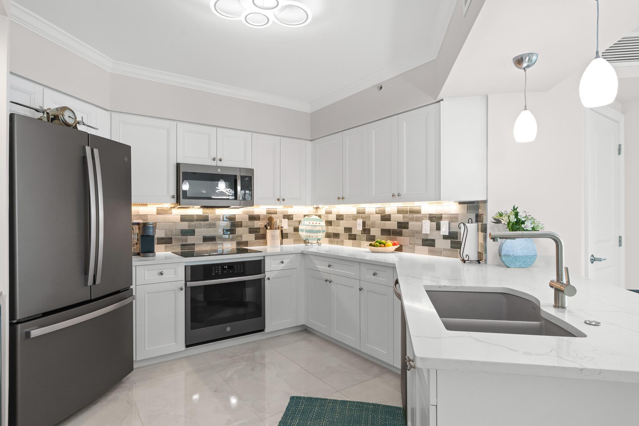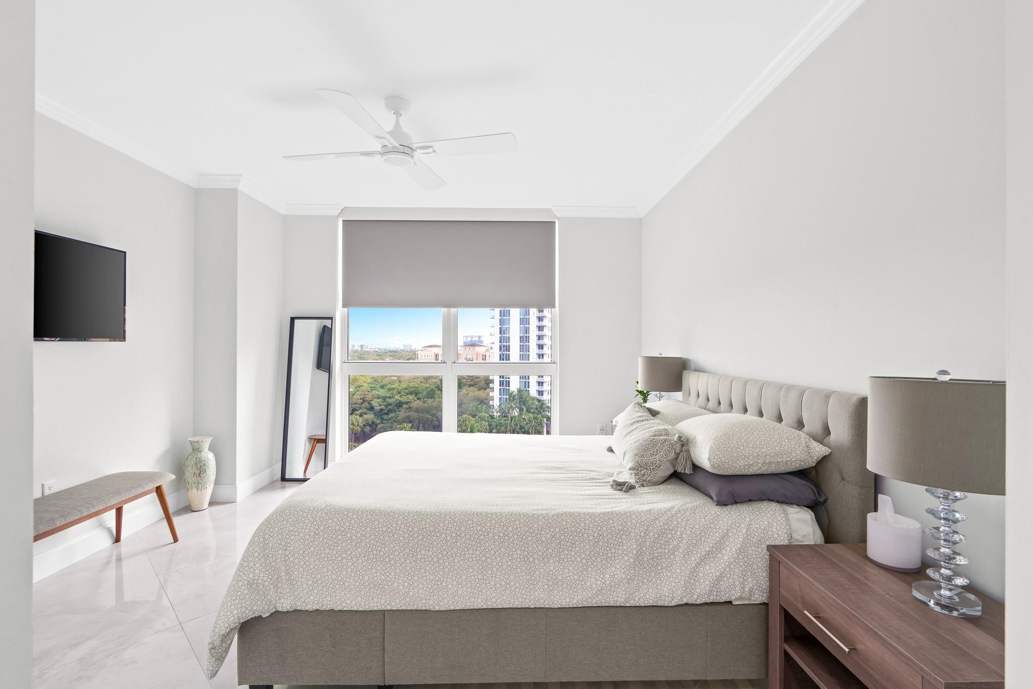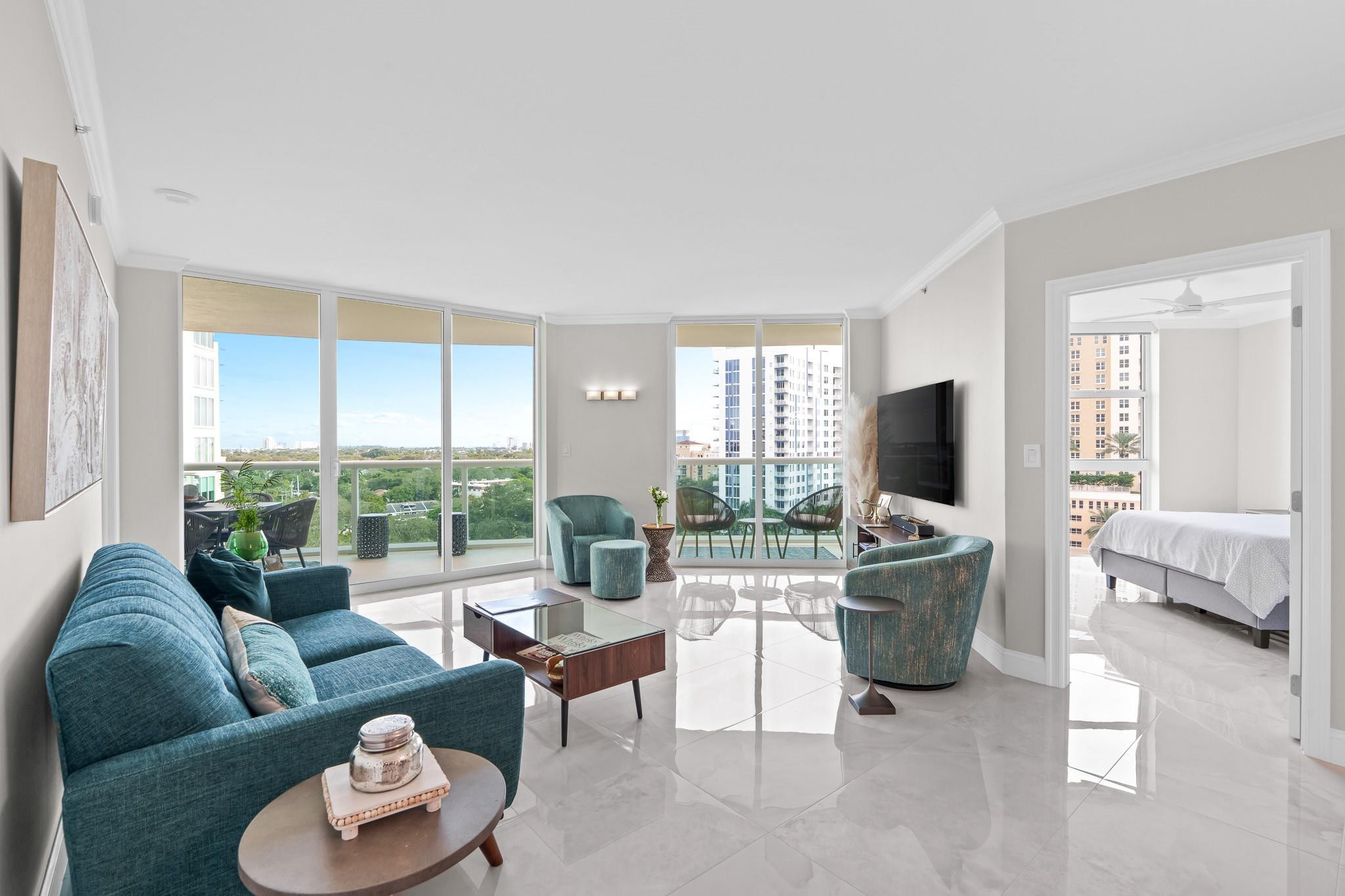 PRICE IMPROVEMENT! ABSOLUTELY STUNNING ULTRA-MODERN CONDO**TOTALLY RENOVATED **TURN-KEY** 2BR/2BTH corner unit with**AMAZING DIRECT RIVER VIEWS**from the expansive (122 Sq ft) wrap-around balcony. Luxury finishes include smooth ceilings, upgraded hardware,2X4 porcelain flooring, custom designed gourmet chef's kitchen boasting NEW slate gray appliances, cabinets, countertops, backsplash, &**(BUILT-IN BAR WITH WINE COOLER & W/D**). Both bathrooms feature floating vanities, illuminated mirrors, new TOTO toilets & mosaic tiles. Electronic black-out shades in bedrooms, modern lighting throughout, custom built-out closets, ceiling fans & newer A/C (2019). ALL FURNITURE & CUSTOM INSTALLED TV's ARE INCLUDED. Bldg has 5* resort-style amenities. PLEASE SEE ATTACHED LIST OF UPGRADES/RENOVATIONS.