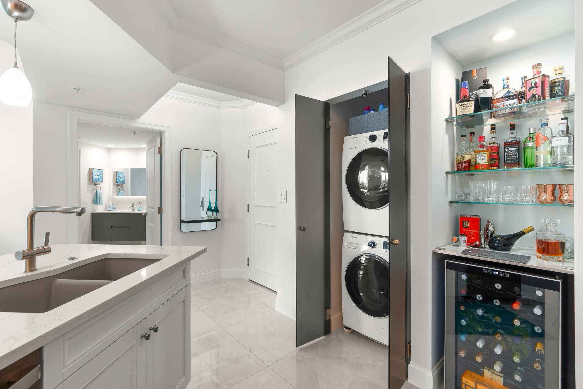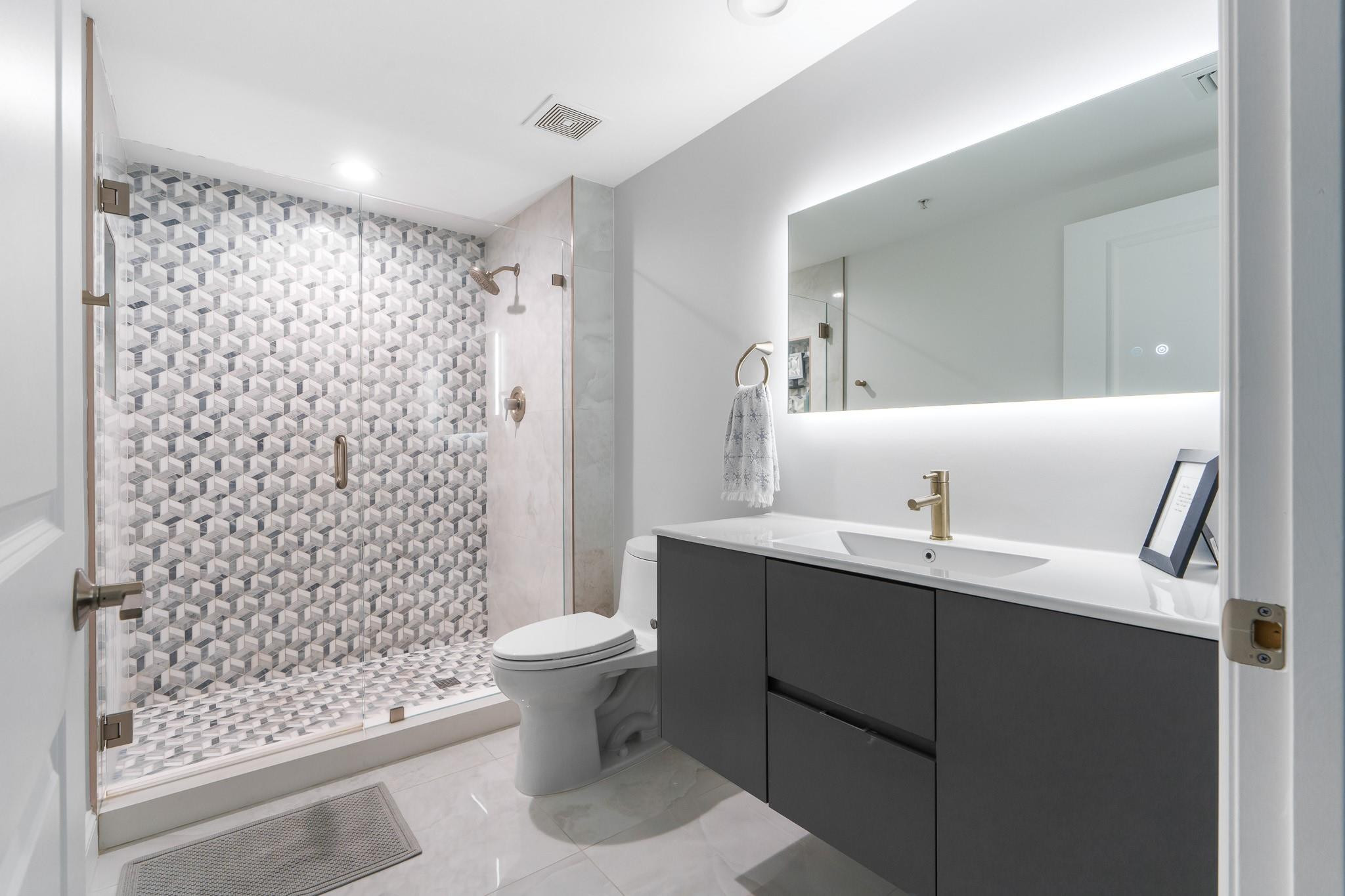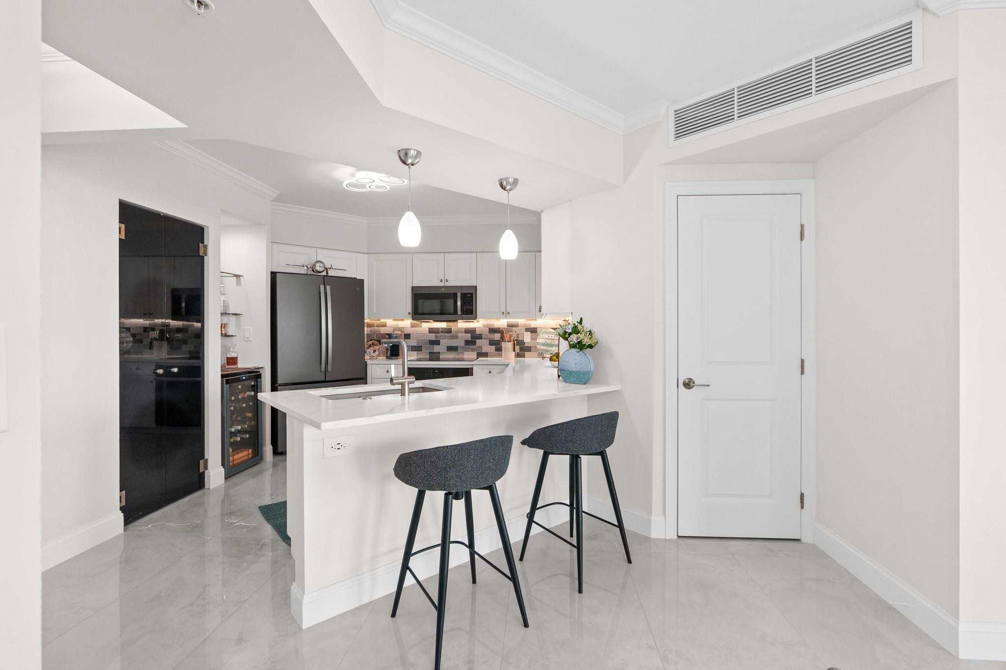 PRICE IMPROVEMENT! ABSOLUTELY STUNNING ULTRA-MODERN CONDO**TOTALLY RENOVATED **TURN-KEY** 2BR/2BTH corner unit with**AMAZING DIRECT RIVER VIEWS**from the expansive (122 Sq ft) wrap-around balcony. Luxury finishes include smooth ceilings, upgraded hardware,2X4 porcelain flooring, custom designed gourmet chef's kitchen boasting NEW slate gray appliances, cabinets, countertops, backsplash, &**(BUILT-IN BAR WITH WINE COOLER & W/D**). Both bathrooms feature floating vanities, illuminated mirrors, new TOTO toilets & mosaic tiles. Electronic black-out shades in bedrooms, modern lighting throughout, custom built-out closets, ceiling fans & newer A/C (2019). ALL FURNITURE & CUSTOM INSTALLED TV's ARE INCLUDED. Bldg has 5* resort-style amenities. PLEASE SEE ATTACHED LIST OF UPGRADES/RENOVATIONS.