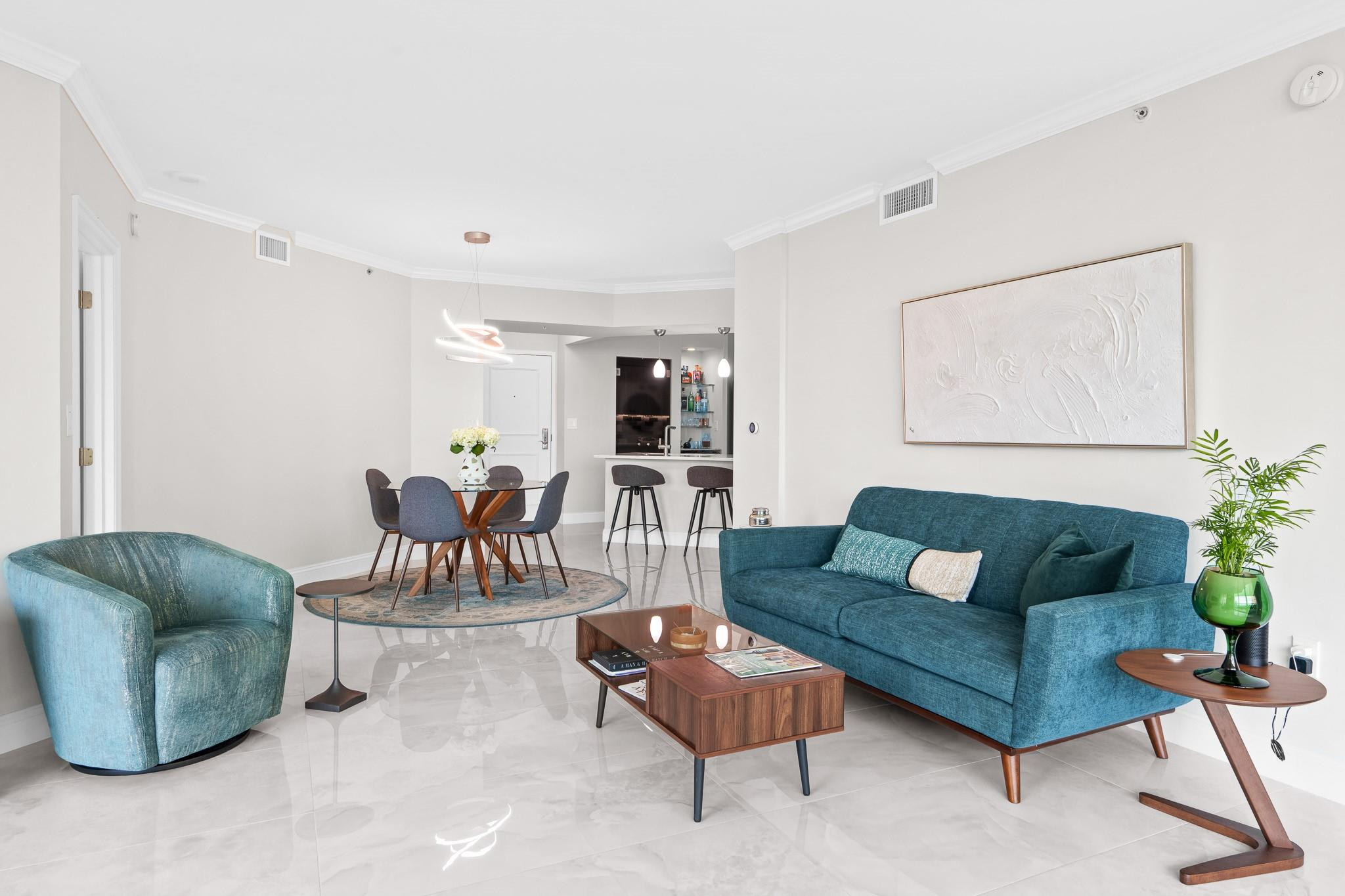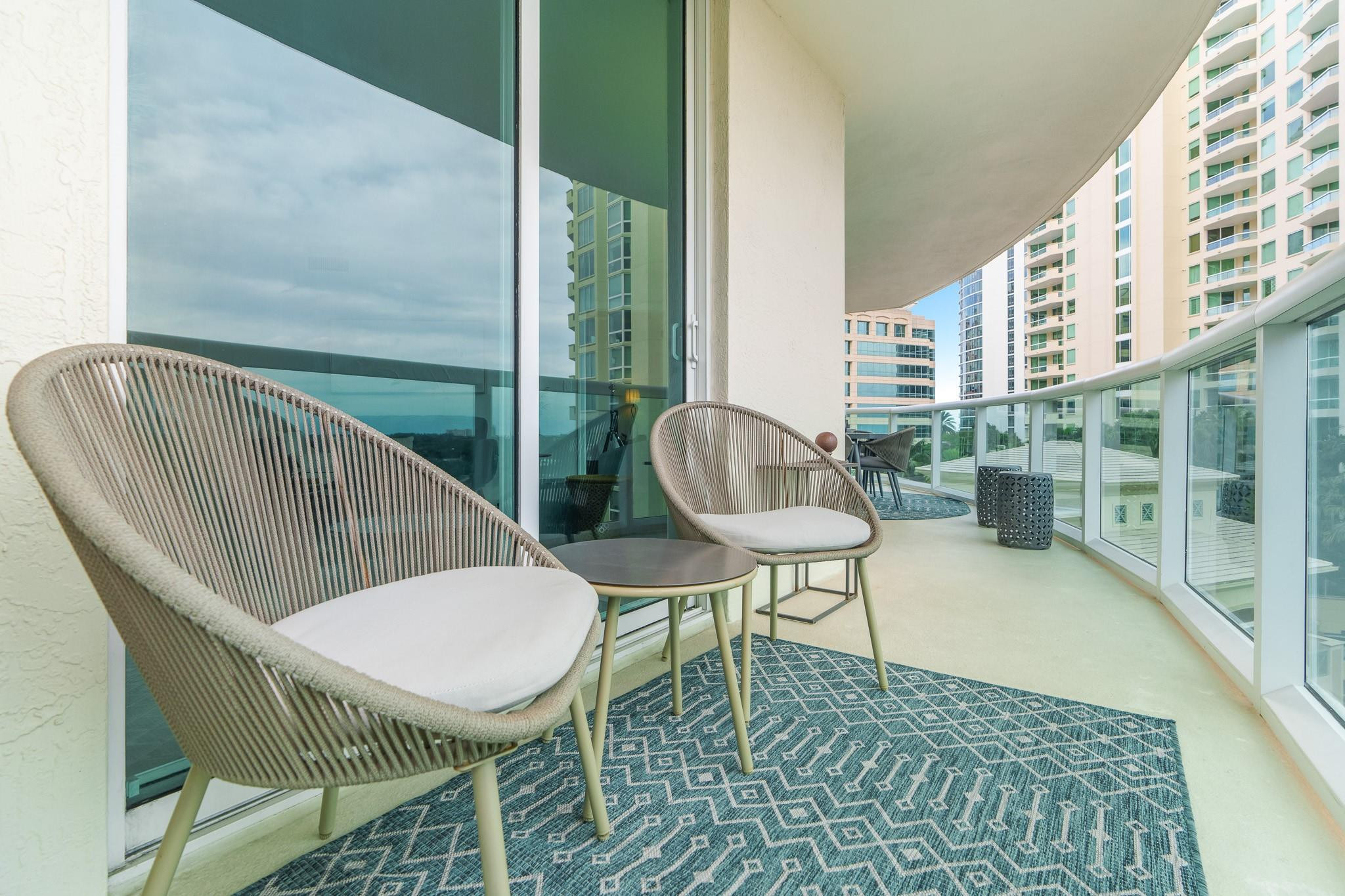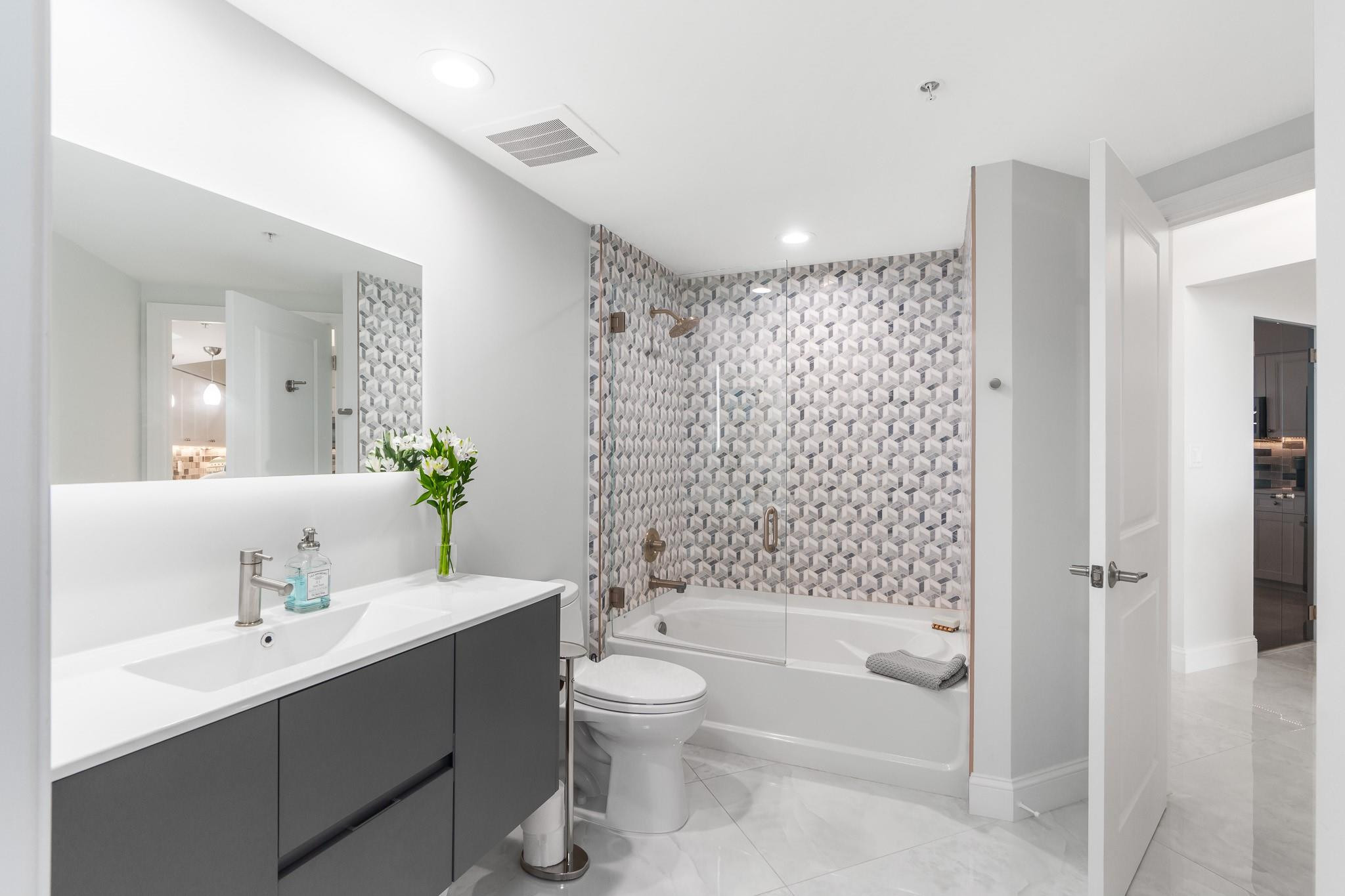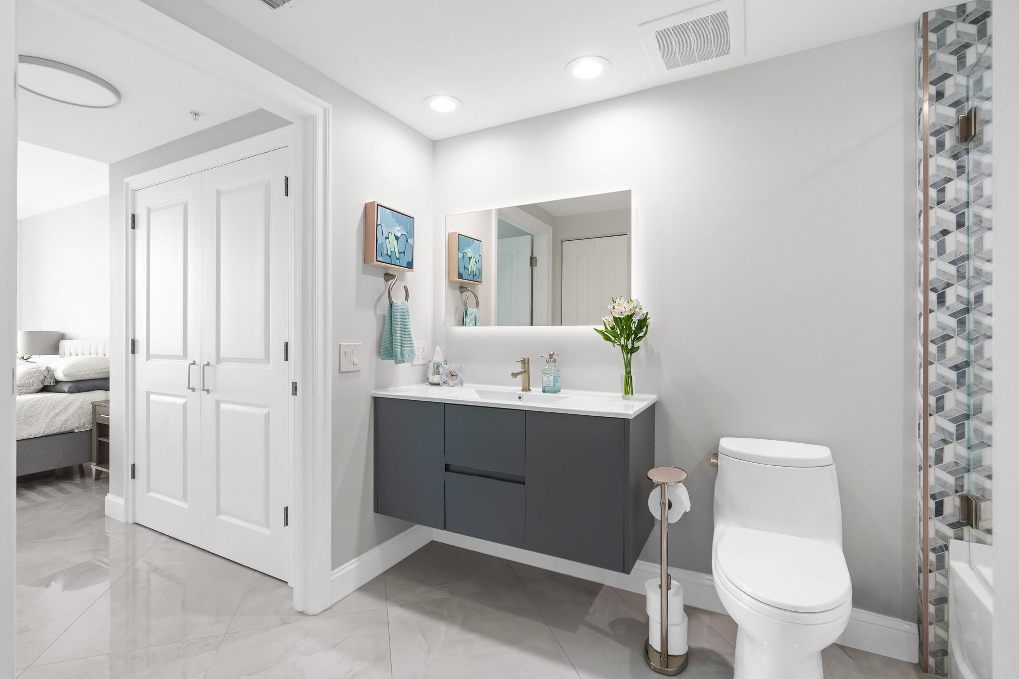 PRICE IMPROVEMENT! ABSOLUTELY STUNNING ULTRA-MODERN CONDO**TOTALLY RENOVATED **TURN-KEY** 2BR/2BTH corner unit with**AMAZING DIRECT RIVER VIEWS**from the expansive (122 Sq ft) wrap-around balcony. Luxury finishes include smooth ceilings, upgraded hardware,2X4 porcelain flooring, custom designed gourmet chef's kitchen boasting NEW slate gray appliances, cabinets, countertops, backsplash, &**(BUILT-IN BAR WITH WINE COOLER & W/D**). Both bathrooms feature floating vanities, illuminated mirrors, new TOTO toilets & mosaic tiles. Electronic black-out shades in bedrooms, modern lighting throughout, custom built-out closets, ceiling fans & newer A/C (2019). ALL FURNITURE & CUSTOM INSTALLED TV's ARE INCLUDED. Bldg has 5* resort-style amenities. PLEASE SEE ATTACHED LIST OF UPGRADES/RENOVATIONS.