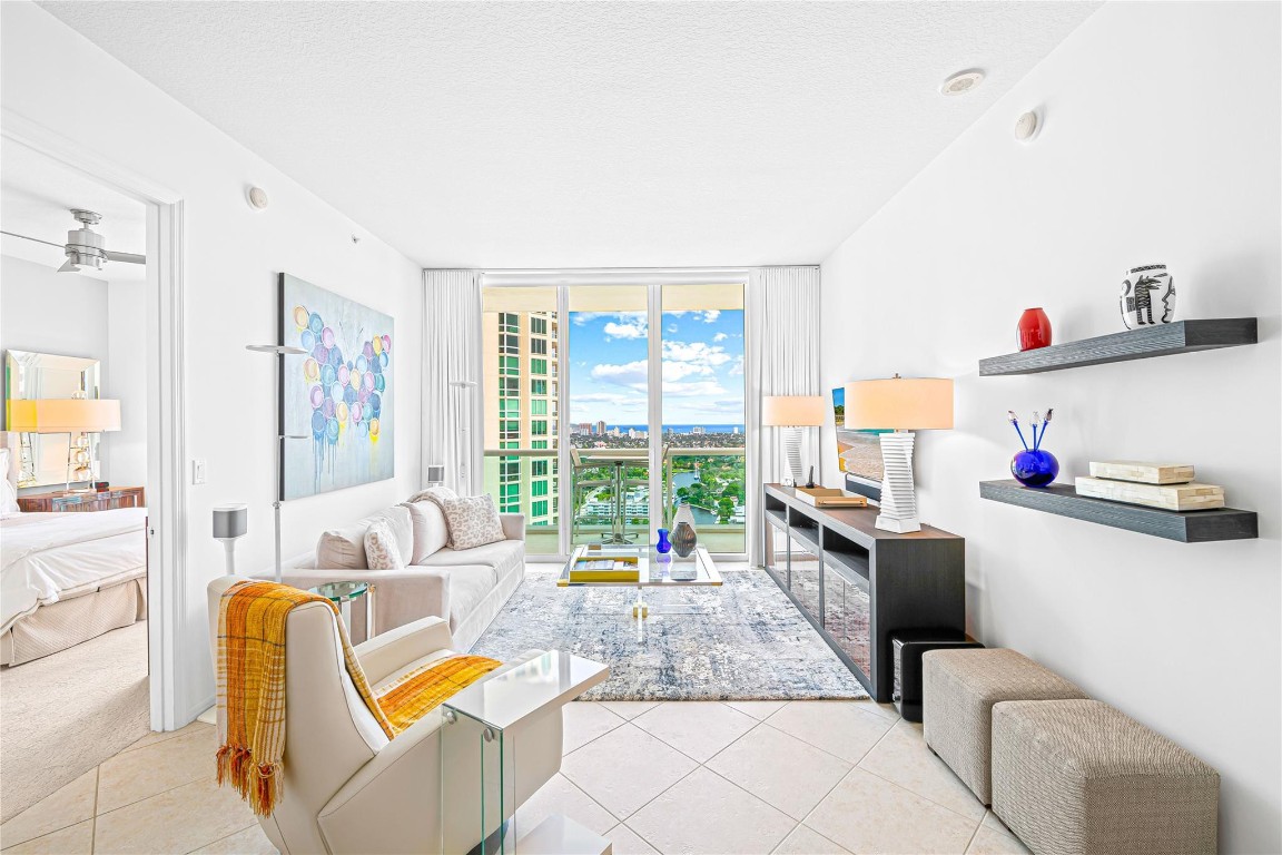 ELEVATED LIVING IN THIS SUB PH RESIDENCE! A SHOWSTOPPER W/ 10 FOOT VOLUME CEILINGS, BREATHTAKING VIEWS OVERLOOKING THE OCEAN, INTRACOASTAL & RIVER, EXPANDED TERRACE & UPGRADED FINISHES. KEY FEATURES - FLOOR TO CEILING GLASS WINDOWS, CUSTOM WINDOW TREATMENTS, TILE FLOORS, BUILT-OUT CLOSETS, QUARTZ COUNTERTOPS, MOSAIC BACKSPLASH, UPGRADED APPLIANCES & FULL SIZE W/D. THIS HIGHLY DESIRED STACK PROVIDES UNPARALLELED VIEWS STRAIGHT DOWN THE RIVER. THOUGHTFULLY DESIGNED W/ 2 SUITES, OPEN LIVING SPACE & SEPARATE DINING AREA. THIS UNIT COMES W/ PARKING IN SECURED GARAGE & CLIMATE CONTROLLED STORAGE CAGE! WATER GARDEN IS A FULL-SERVICE BUILDING W/5 STAR RESORT STYLED AMMENETIES - 24HR VALET, FRONT DESK, SECURITY, CONCEIRGE, HEATED POOL & SPA, FITNESS CENTER, SAUNA, BBQ AREA, THEATER AND CLUBROOM.