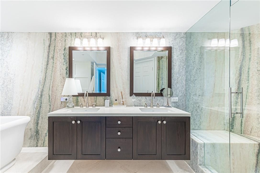 BEAUTIFULLY FURNISHED BRADFORD SOUTH. ADORNED AND DECORATED WITH THE HIGHEST QUALITY FINISHES AND COLLECTABLES FROM ALL OVER THE WORLD. UNOBSTRUCTED VIEWS FROM THE EXPANSIVE TERRACE BOASTING RIVER, INTRACOASTAL AND OCEAN PANORAMAS! POLISHED MARBLE FLOORS, EXQUISITE FIXTURES, BEAUTIFUL POGGENPOHL KITCHEN, WATERWORKS BATHROOMS, MARBLE DEEP SOAKING JACUZZI TUB, MOSAIC TILES, FLOOR TO CEILING MARBLE WALLS, DORNBRACHT FIXTURES, FLOATING VANITIES, GLASS ENCLOSED SHOWERS & TOTO TOILETS. WORLD CLASS RESORT STYLED AMENITIES, PRIVATE RESIDENCE CLUB, FITNESS CENTER, HEATED SALTWATER POOL, SPA, CABANAS, VALET, 24 HOUR SECURITY, AND CONCIERGE. AVAIABLE FROM 5/15/24 THRU 12/15/24