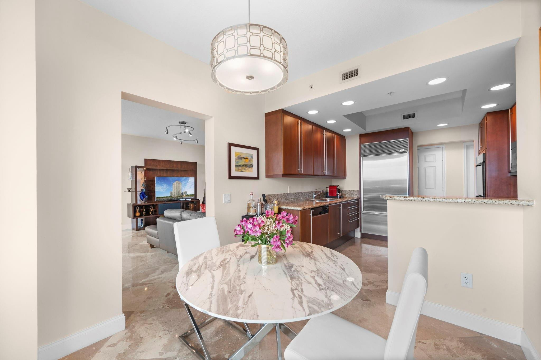 Exceeding your expectations from this Bradford model w/ direct river & city views! This split bedroom floorplan offers 1630sqft of spacious living areas & an expansive 49-foot terrace with breath-taking views. A thoughtful design connects every room to the terrace through floor to ceiling glass sliders, making for an easy transition from indoor to outdoor space. Marble flooring throughout, chef kitchen is fitted w/Poggenpohl cabinetry, subzero, Thermador & Meile appliances. The large primary suite features jacuzzi tub, marble dual vanity, private lavatory & glass enclosed walk-in shower. All closets are built out for optimal use of space & organization. Laundry room with full-size washer dryer and utility sink. Assigned Garage Parking on the same level as the unit. Storage cage included.