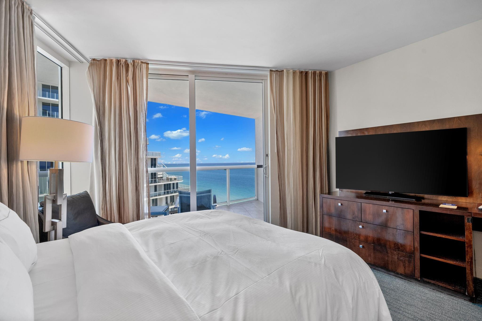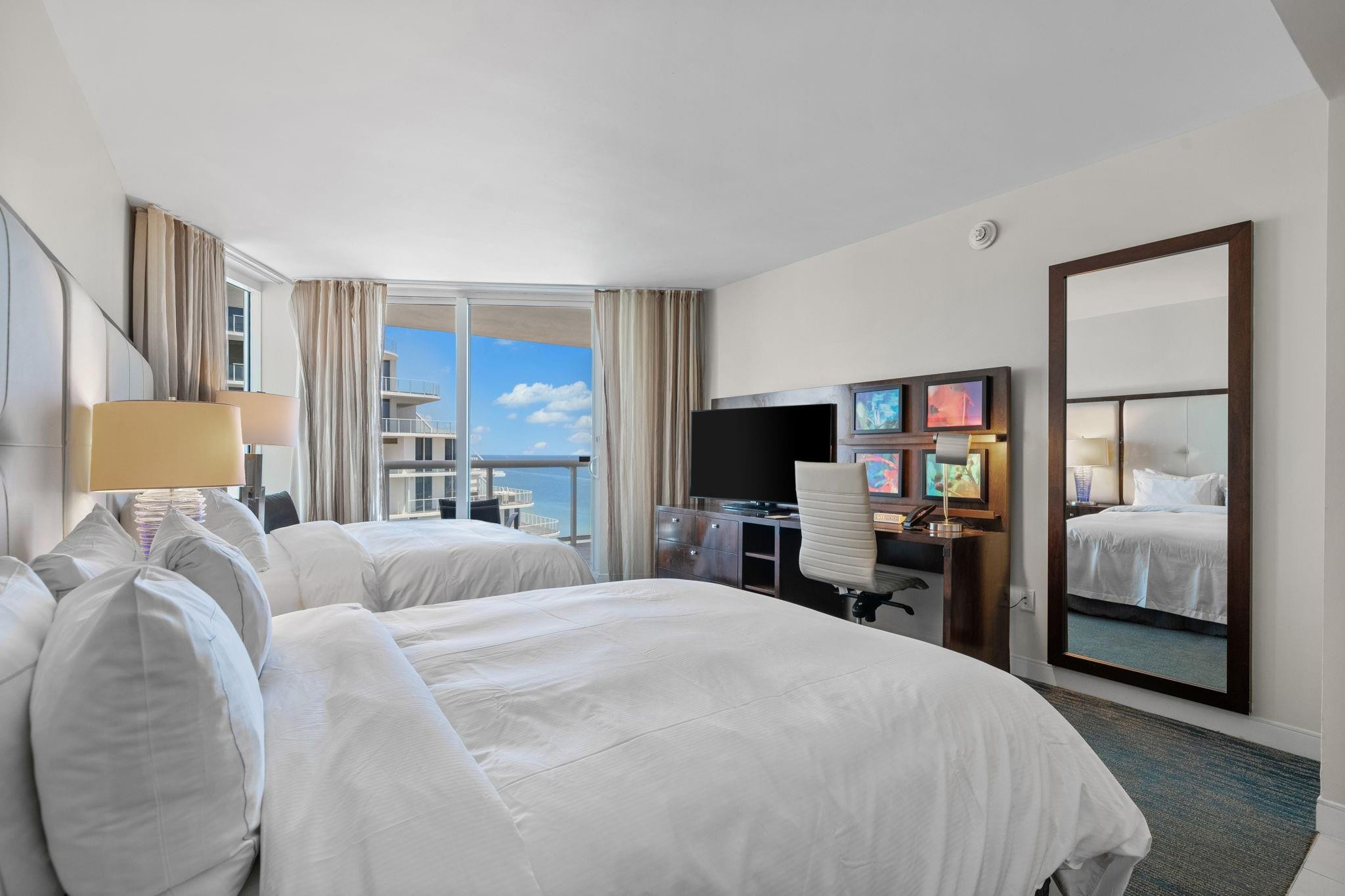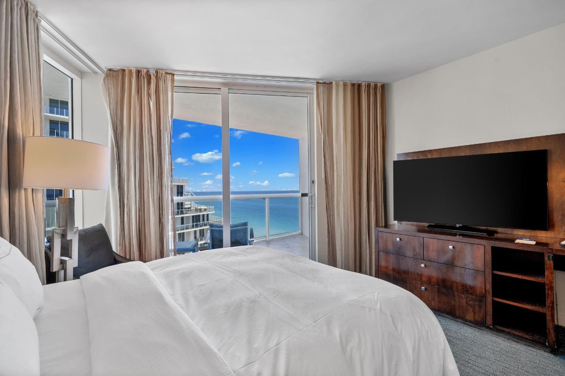 OWN OCEAN FRONT at the Hilton Q Club! Fully furnished and appointed condo-hotel, ocean views from a large terrace! This comfortable suite offers floor-to-ceiling impact windows, a private balcony, owner closet ,washer/dryer, and small kitchen. Enjoy world class services and on-site resort amenities including restaurants, roof top bar and lounge, room service, 24-hour fitness center, spa, bars, tropical pool deck, and business center. An optional program managed by Hilton is available. Owners can reside 120/days/year, 60 days in season and 60 off season. And /or rent your unit out while not in use. This extremely popular location and luxurious hotel stays very busy!This unit had guest for 288 days of the year in 2024!