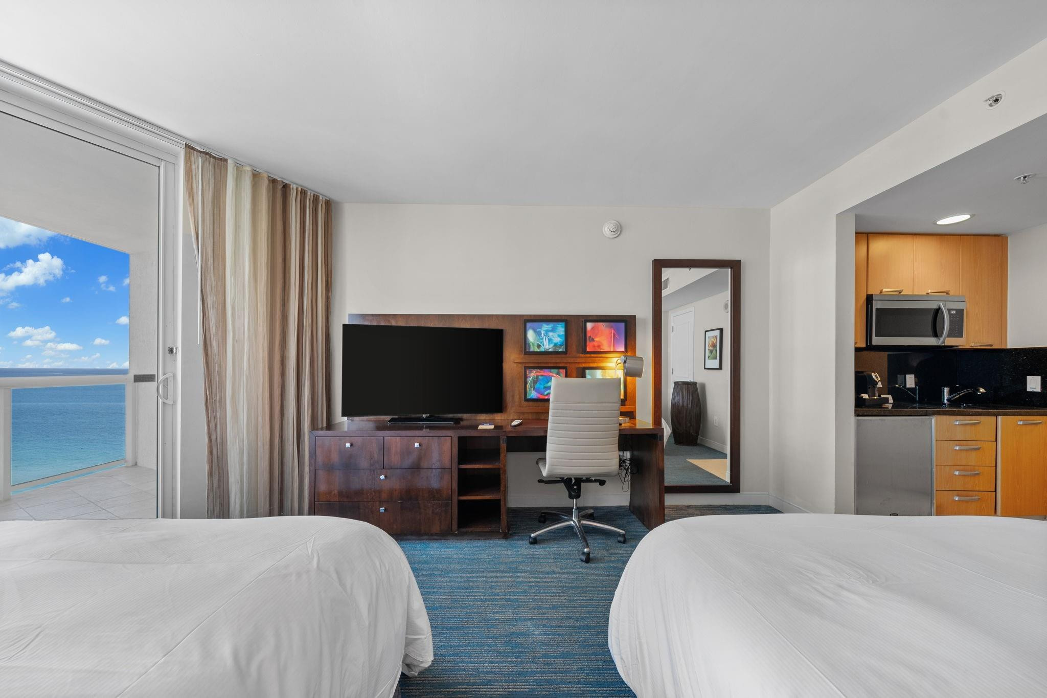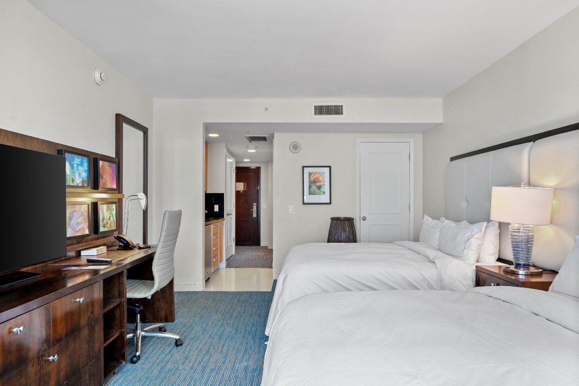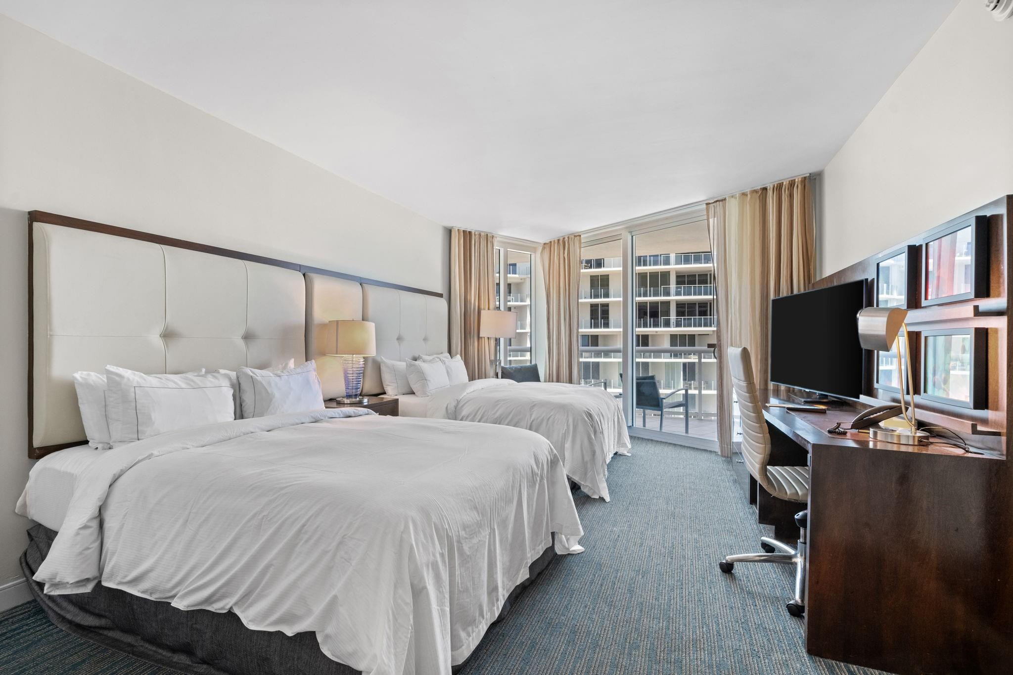 OWN OCEAN FRONT at the Hilton Q Club! Fully furnished and appointed condo-hotel, ocean views from a large terrace! This comfortable suite offers floor-to-ceiling impact windows, a private balcony, owner closet ,washer/dryer, and small kitchen. Enjoy world class services and on-site resort amenities including restaurants, roof top bar and lounge, room service, 24-hour fitness center, spa, bars, tropical pool deck, and business center. An optional program managed by Hilton is available. Owners can reside 120/days/year, 60 days in season and 60 off season. And /or rent your unit out while not in use. This extremely popular location and luxurious hotel stays very busy!This unit had guest for 288 days of the year in 2024!