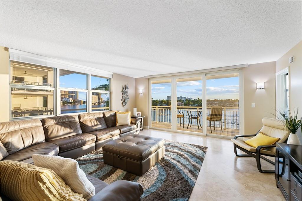 SPECTACULAR SOUTH CORNER UNIT WITH WRAP AROUND BALCONY RARELY AVAILABLE! BEAUTIFULLY RENOVATED WITH PHENOMENAL DIRECT INTRACOASTAL & CITY SKYLINE VIEWS! OPEN FLOORPLAN WITH NEUTRAL MARBLE FLOORS IN THE LIVING AREAS AND CARPET IN THE BEDROOMS. CUSTOM DESIGNED KITCHEN WITH STAINLESS STEEL APPLIANCES, GRANITE COUNTER TOPS, RAISED BREAKFAST BAR & WASHER & DRYER. PRIMARY BEDROOM COMFORTABLY FITS A KING-SIZED BED, DESK & LOUNGE CHAIR. BOTH BATHS HAVE GRANITE COUNTER TOPS. CUSTOM LIGHTING, SUNSHADES. AMENITIES INCLUDE HEATED SALINE POOL, BBQ-GRILL, GYM, SAUNAS, SHOWERS, BILLIARD ROOM, CLUB ROOM/KITCHEN, ROOF TOP SUN DECK & MORE. PHENOMENAL LOCATION ONLY A FEW SHORT BLOCKS TO FORT LAUDERDALE BEACH!
