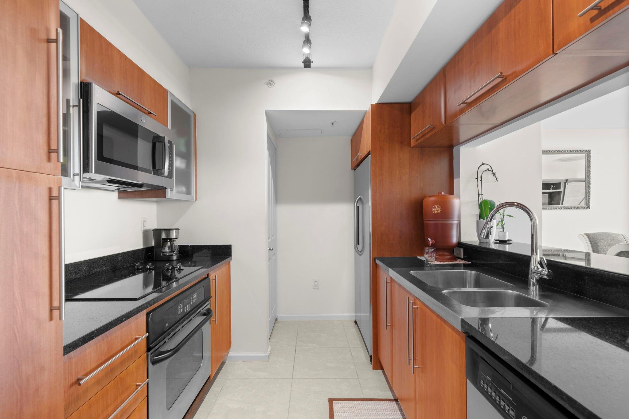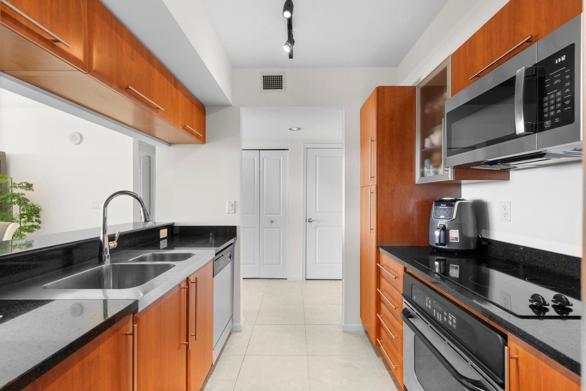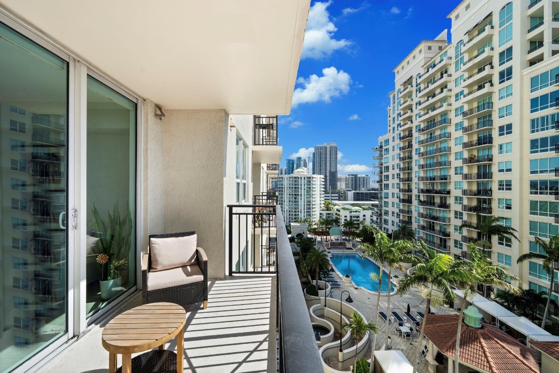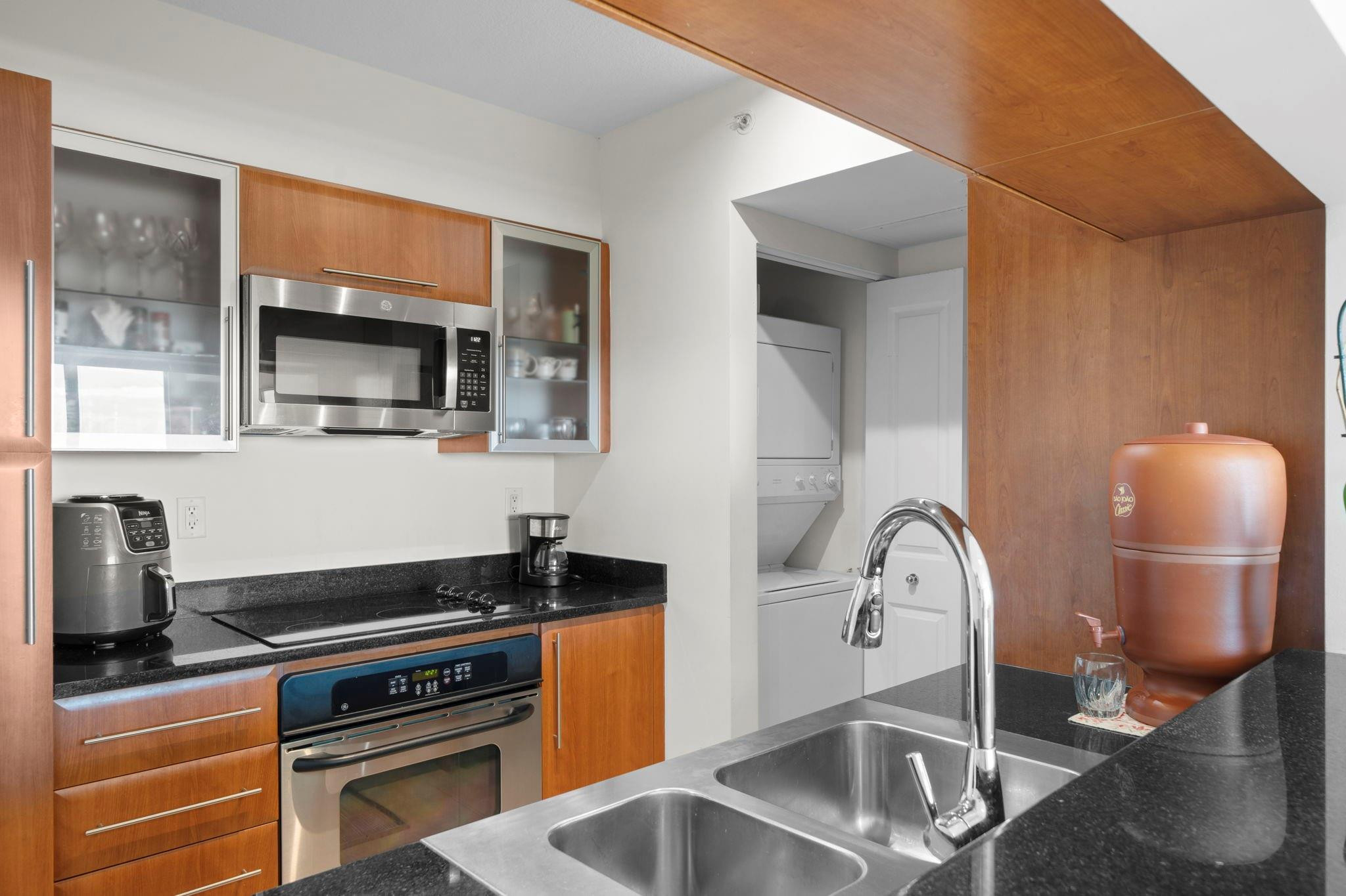 Seasonal Furnished Rental at the Symphony! Beautifully furnished one bedroom one bath unit overlooking the pool, city and the river! Picture perfect sunsets from your terrace! Open living space, with tile floors throughout. Fully equipped kitchen with everything you need! Granite countertops, stainless appliances, washer/dryer in the unit! Spacious bedroom with queen sized bed, dresser and night stands . The bathroom features limestone floors, dual vanity and tub/shower combo. Symphony is located right on the river, close to everything! Guard Gated Luxury Condo Building with five star amenities, live like you are on vacation at the Symphony!