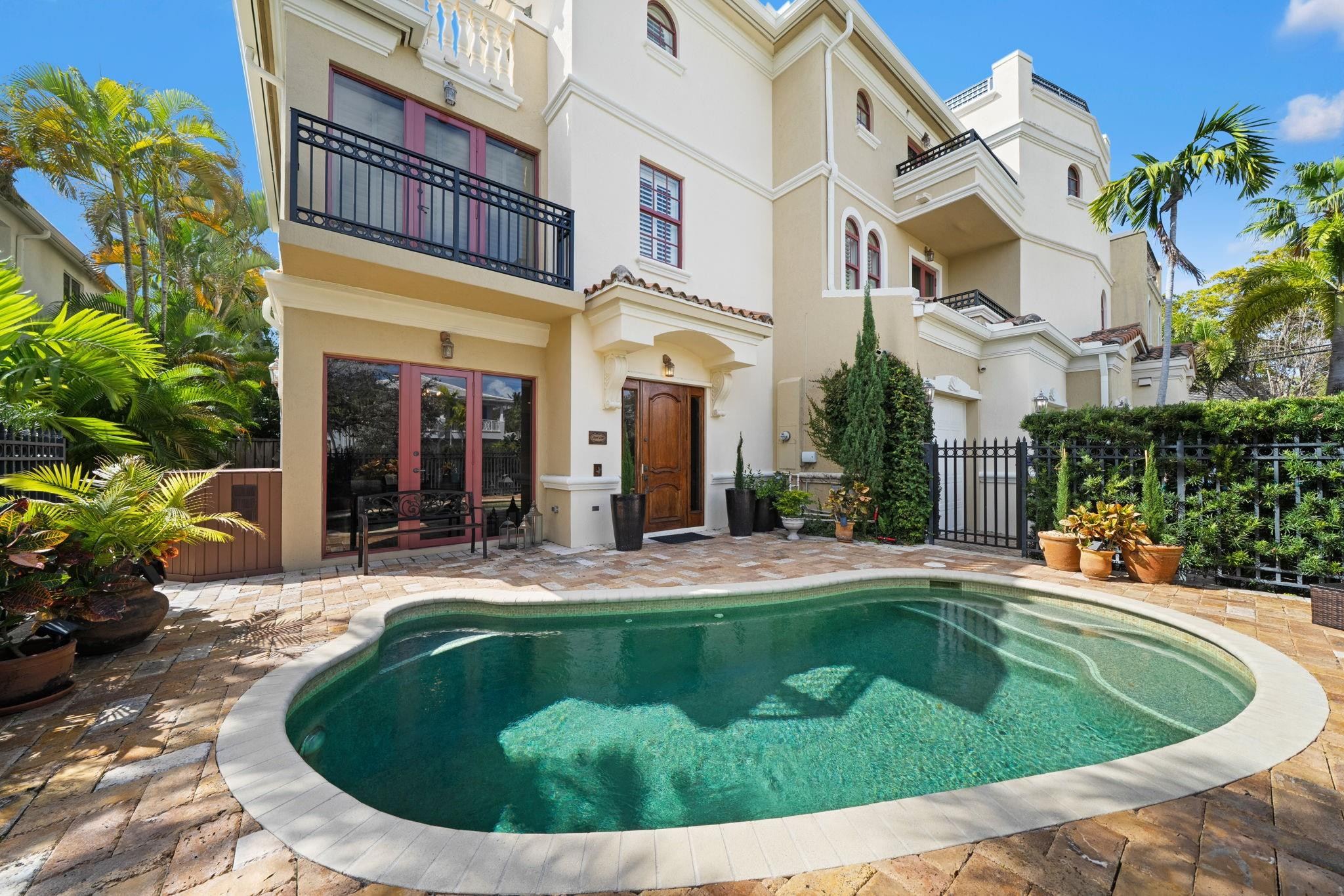 THIS IS IT! The PERFECT Victoria Park Location on a Quiet Tree Lined Interior Street! Huge Corner Townhouse with Two Car Garage, Large Pool and Outdoor Space. First Floor Living Areas with Vaulted Ceilings and Marble Floors, Large Living and Dining, Gas Cooking, Subzero Oversized Fridge, Large Island, Pantry, Powder Room and Interior Elevator Connecting to all Three Floors. Iron Staircase leads up Primary Suite with Terrace, Huge Walk-in Closet, Spa Like Bath, Guest Room with Ensuite Marble Bath and Terrace, and Laundry Conveniently Located on the Second Floor. The Third Floor Opens to a Large Flex Space for Family Room AND Office, Huge Terrace Overlooking the Skyline of Downtown Fort Lauderdale, And a Third Guest Suite, with Large Walkin Closet, Guest Bath and Private Terrace! Come See!
