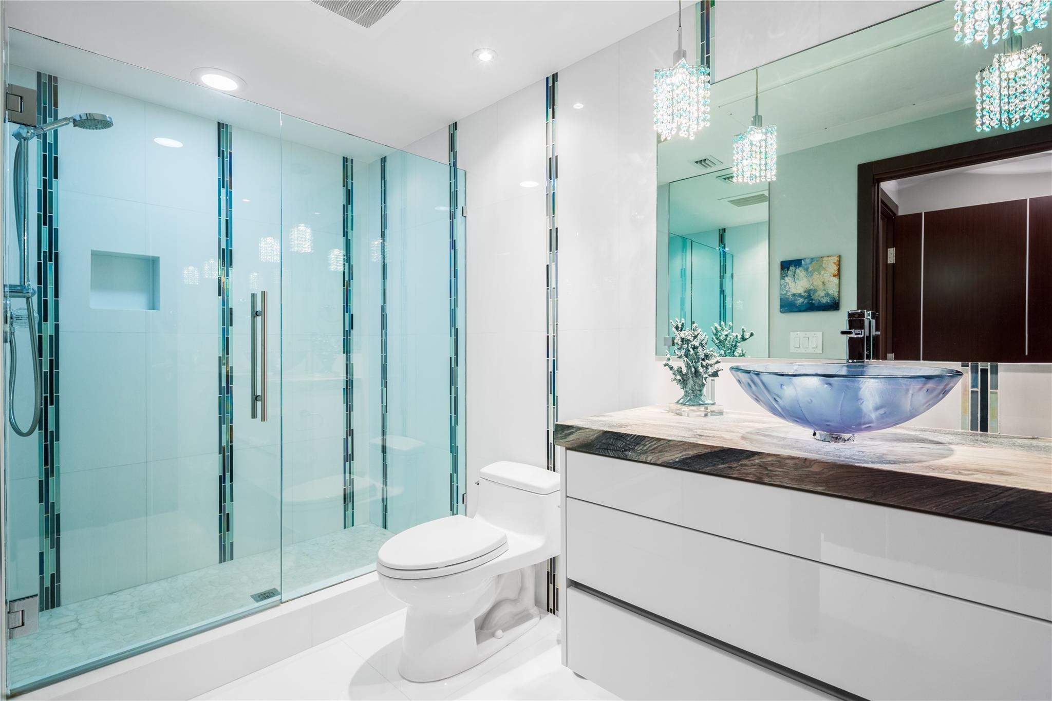 STUNNING CONTEMPORARY REDESIGNED FURNISHED RESIDENCE, OVERLOOKING THE INTRACOASTAL, DOWNTOWN, & ONLY STEPS TO THE OCEAN. A TRUE ONE-OF-A-KIND UNIT, OFFERING VIEWS FROM EVERY ROOM, FLOOR TO CEILING WINDOWS, DOUBLE GLASS DOOR ENTRY, SLEEK PORCELAIN TILES THROUGHOUT, WALLS OF WHITE STONE, MARBLE, MOSAICS, & A CUSTOM GLASS WALL WATERFALL. AN OPEN FLOOR PLAN WITH OVER 3400 SQFT, THIS 3 BEDROOM, 3.5 BATHROOM IS A SHOWSTOPPER WITH A MODERNIZED KITCHEN FEATURING HIGH GLOSS CABINETRY, DACOR, MEILE & BOSCH APPLIANCES, CUSTOM ILLUMINATED BAR, & WINE COOLER. THE OPEN FLOOR PLAN PROVIDES AN EASE FOR ENTERTAINMENT WITH SIMPLE TRANSITION FROM THE LIVING AREAS TO THE EXPANSIVE WATERFRONT TERRACE. THE MASTER SUITE IS COMPLETE WITH SPA LIKE BATHROOM, CUSTOM BUILT-INS, SIZABLE CLOSETS & A PRIVATE TERRACE.