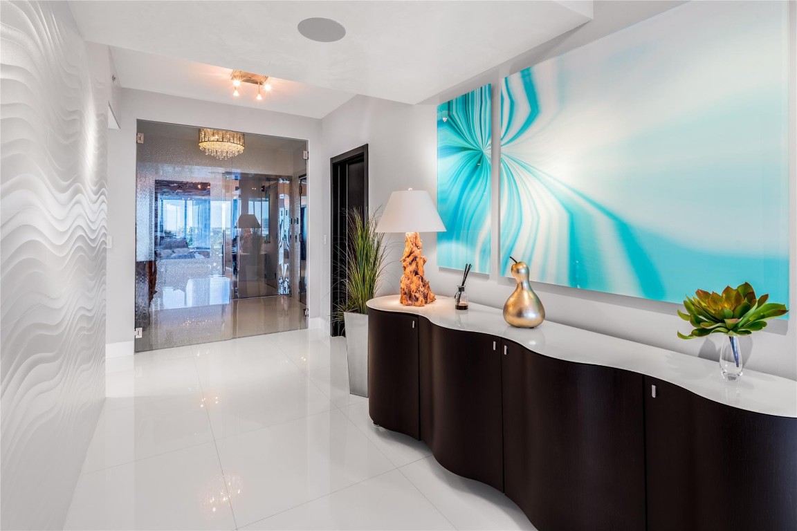 ANNUAL ONLY! STUNNING CONTEMPORARY REDESIGNED RESIDENCE, OVERLOOKING THE INTRACOASTAL, DOWNTOWN, & ONLY STEPS TO THE OCEAN. A TRUE ONE-OF-A-KIND UNIT, OFFERING VIEWS FROM EVERY ROOM, FLOOR TO CEILING WINDOWS, DOUBLE GLASS DOOR ENTRY, SLEEK PORCELAIN TILES THROUGHOUT, WALLS OF WHITE STONE, MARBLE, MOSAICS, & A CUSTOM GLASS WALL WATERFALL. AN OPEN FLOOR PLAN WITH OVER 3400 SQFT, THIS 3 BEDROOM, 3.5 BATHROOM IS A SHOWSTOPPER WITH A MODERNIZED KITCHEN FEATURING HIGH GLOSS CABINETRY, DACOR, MEILE & BOSCH APPLIANCES, CUSTOM ILLUMINATED BAR, & WINE COOLER. THE OPEN FLOOR PLAN PROVIDES AN EASE FOR ENTERTAINMENT WITH SIMPLE TRANSITION FROM THE LIVING AREAS TO THE EXPANSIVE WATERFRONT TERRACE. THE MASTER SUITE IS COMPLETE WITH SPA LIKE BATHROOM, CUSTOM BUILT-INS, SIZABLE CLOSETS & A PRIVATE TERRACE.